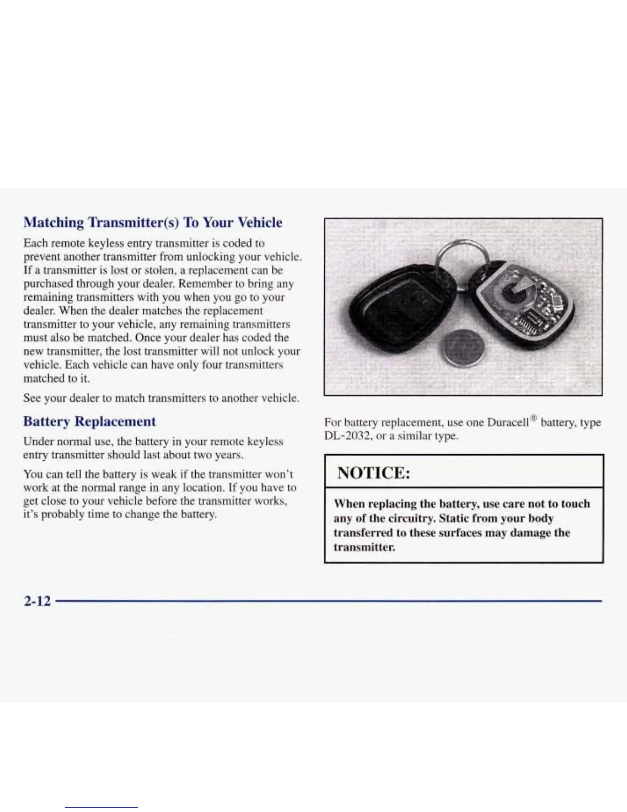 Each remote keyless entry transmitter is coded to