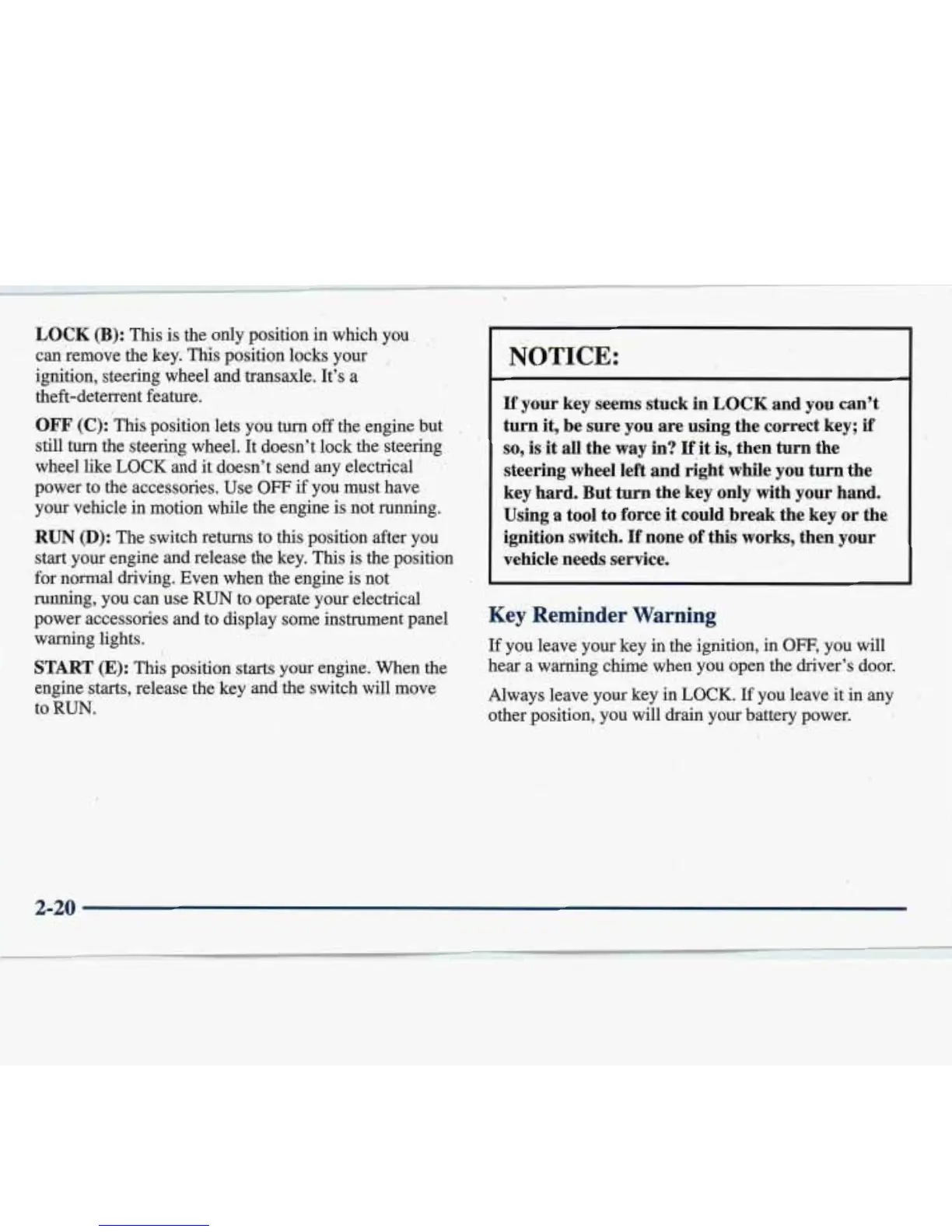 engine starts, release the key and the switch will move