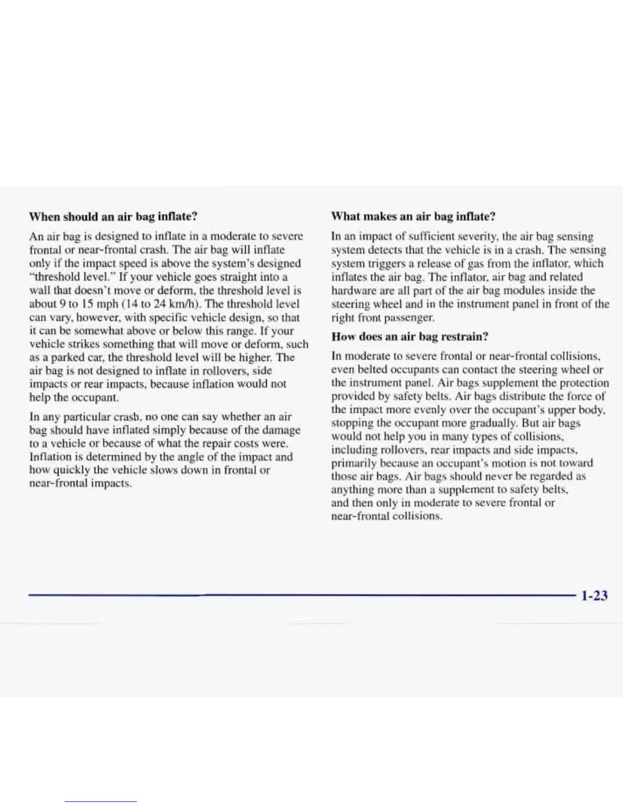 frontal or near-frontal crash. The air bag will inflate
