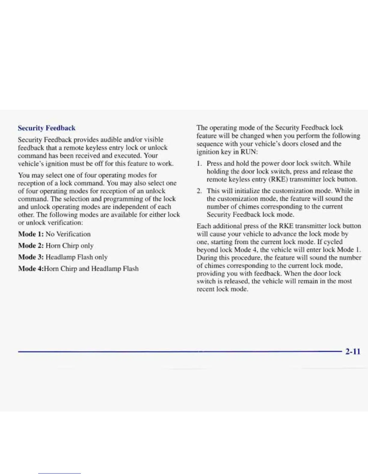 feedback that a remote keyless entry lock or unlock