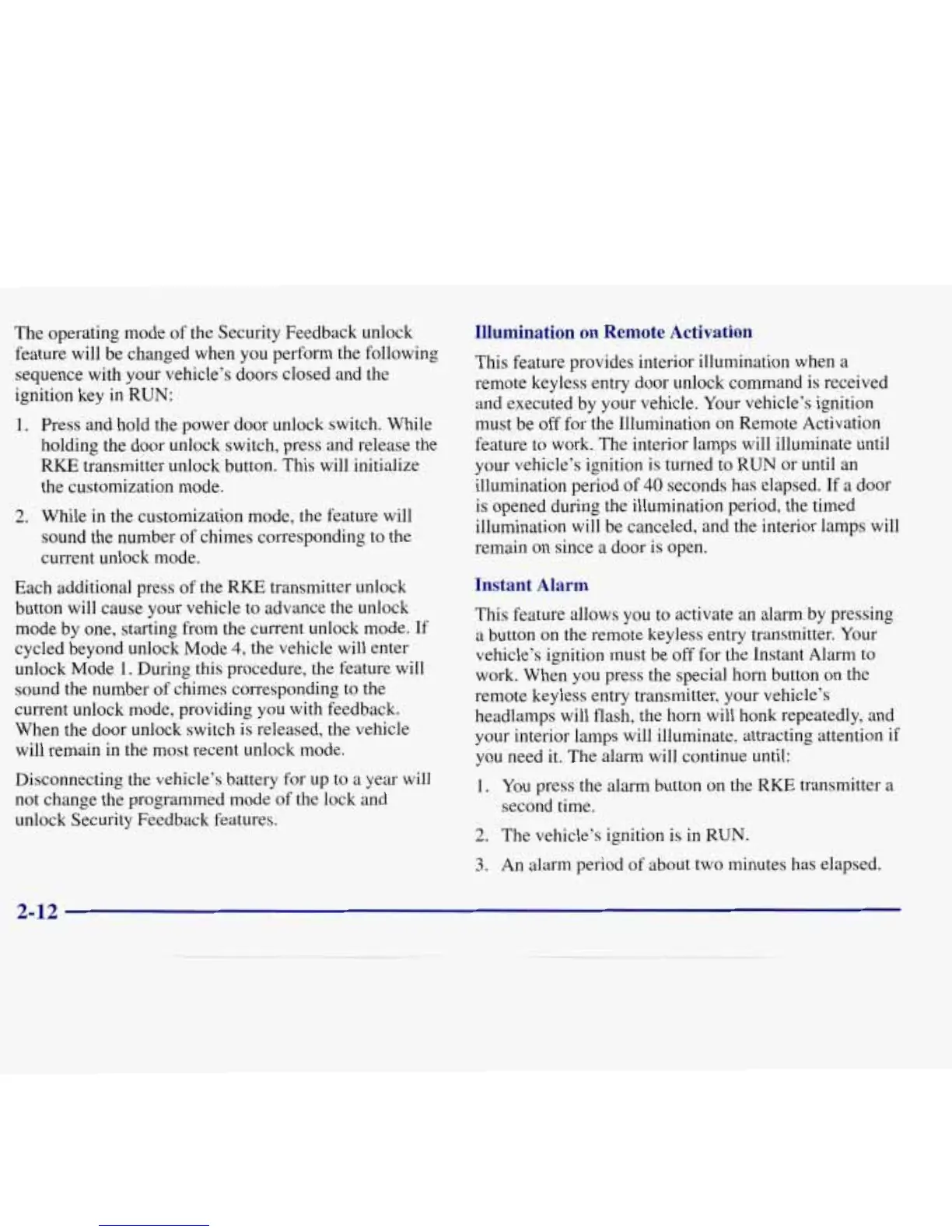 vehicle’s ignition must be off for the Instant Alarm to