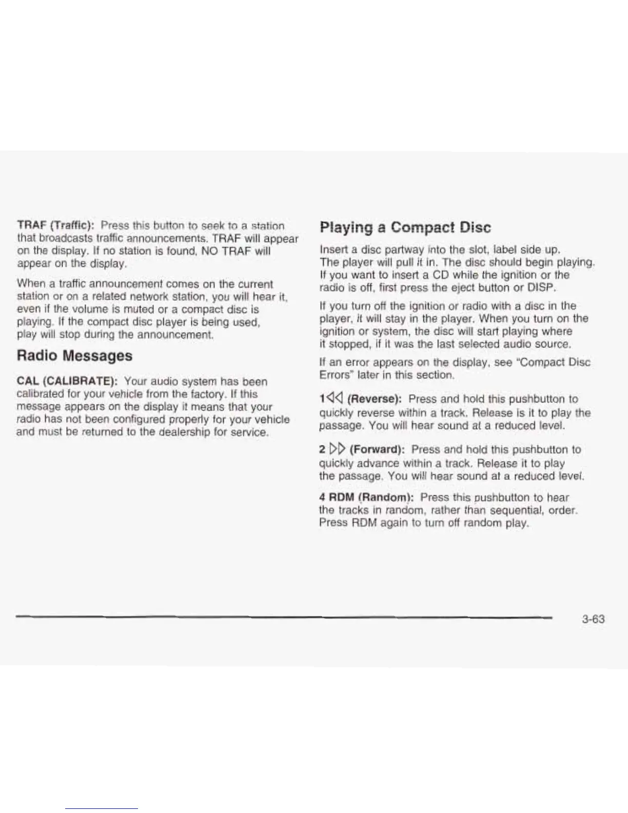 an error appears on the display, see “Compact Disc
