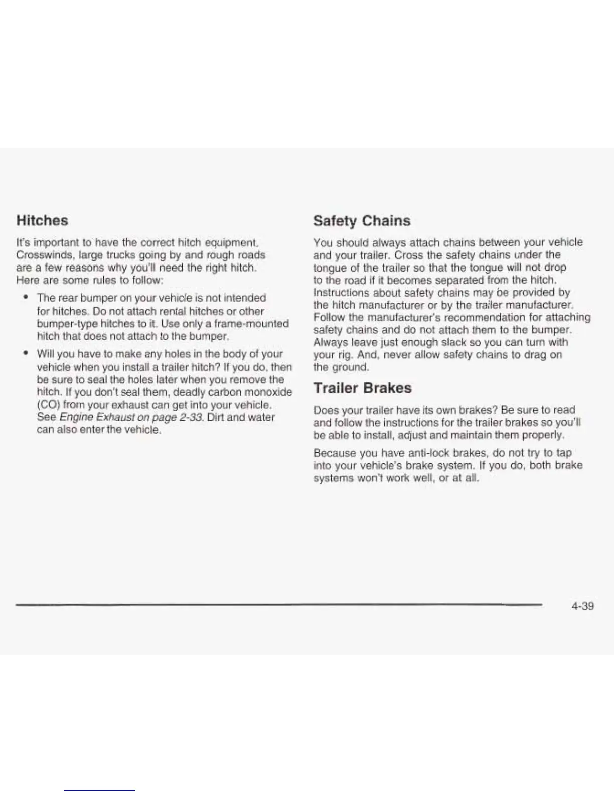 safety chains and do not attach them to the bumper.