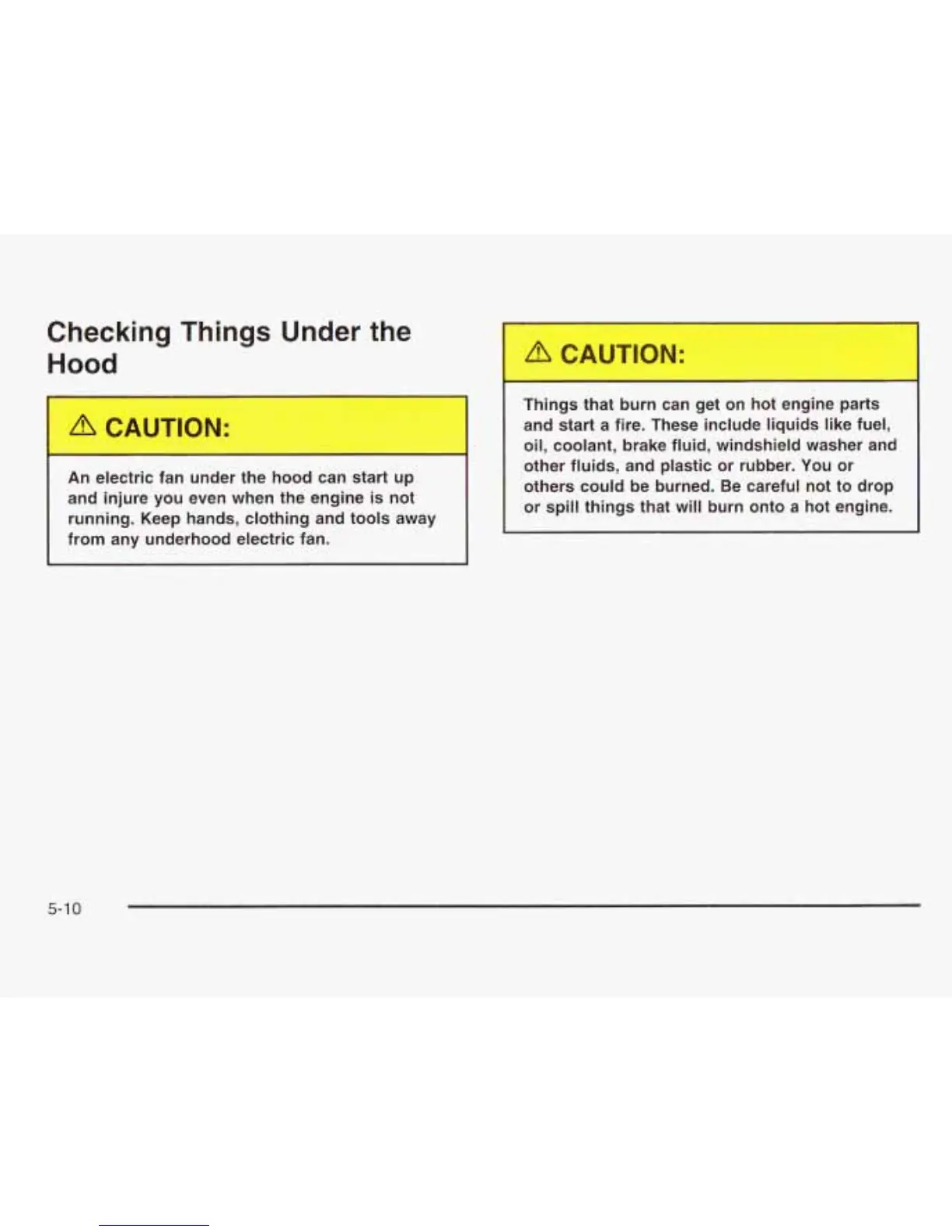 or spill things that will burn onto a hot engine.