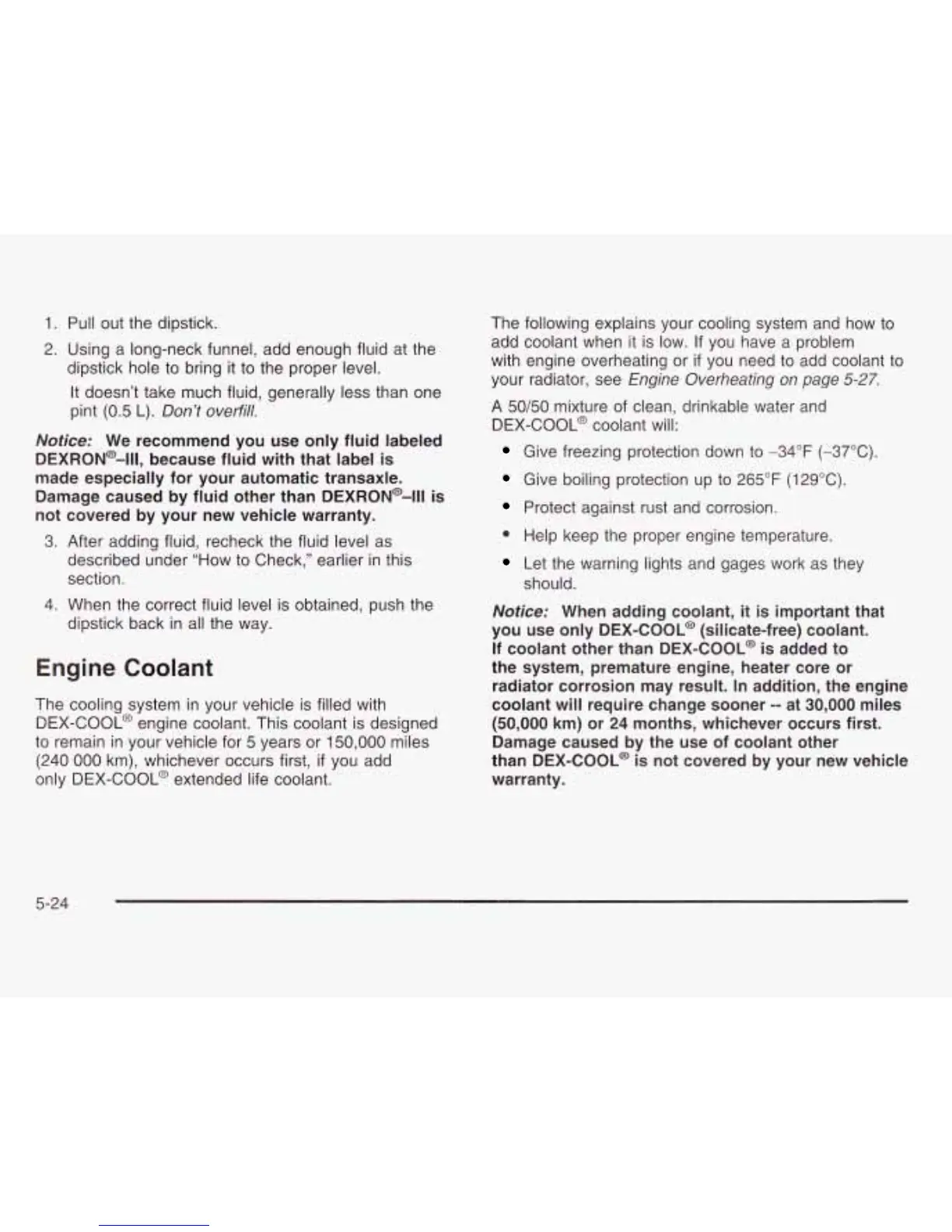 than DEX-COOL@ is not covered by your new vehicle