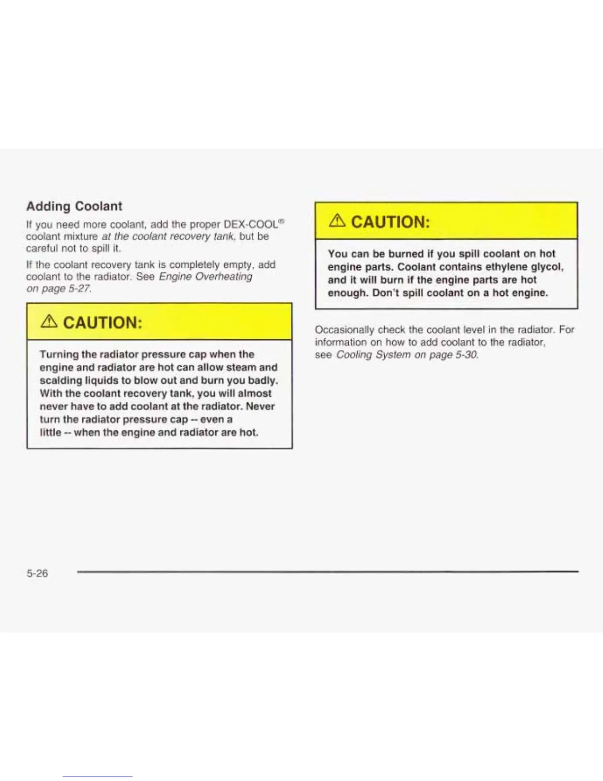 burned if you spill coolant on hot