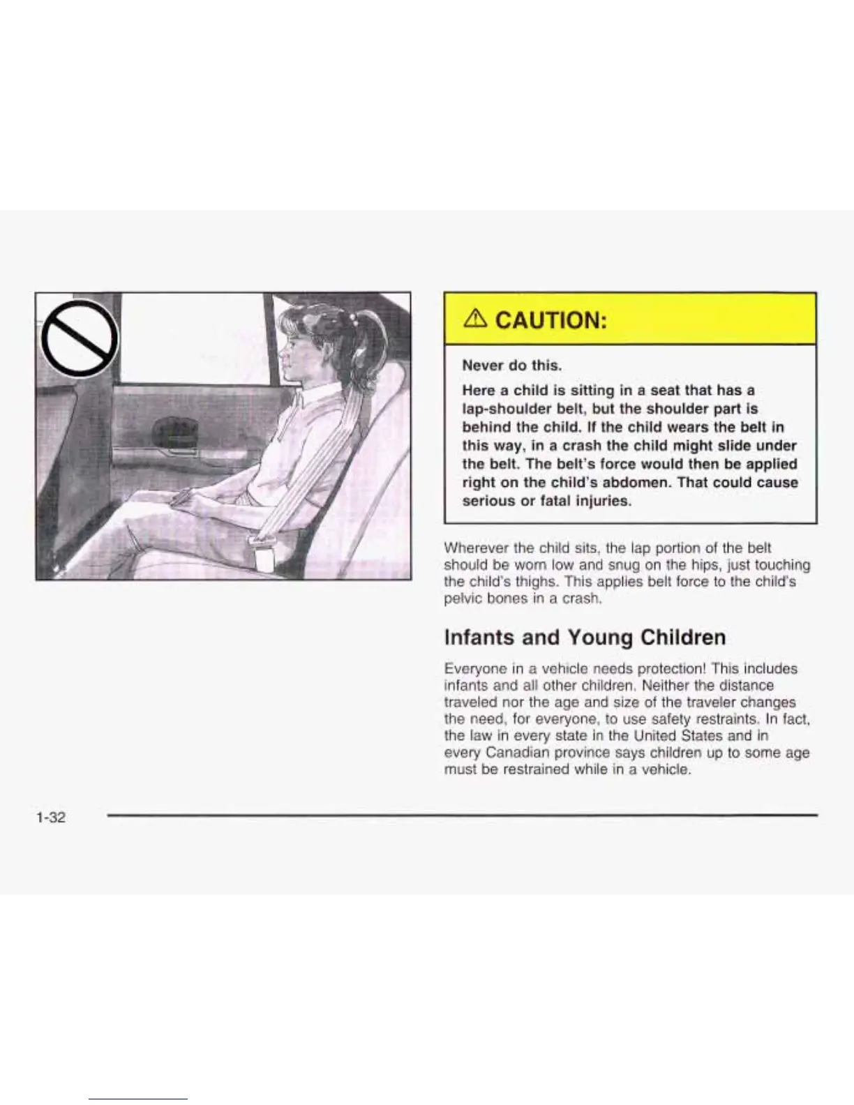 the child’s thighs. This applies belt force to the child’s