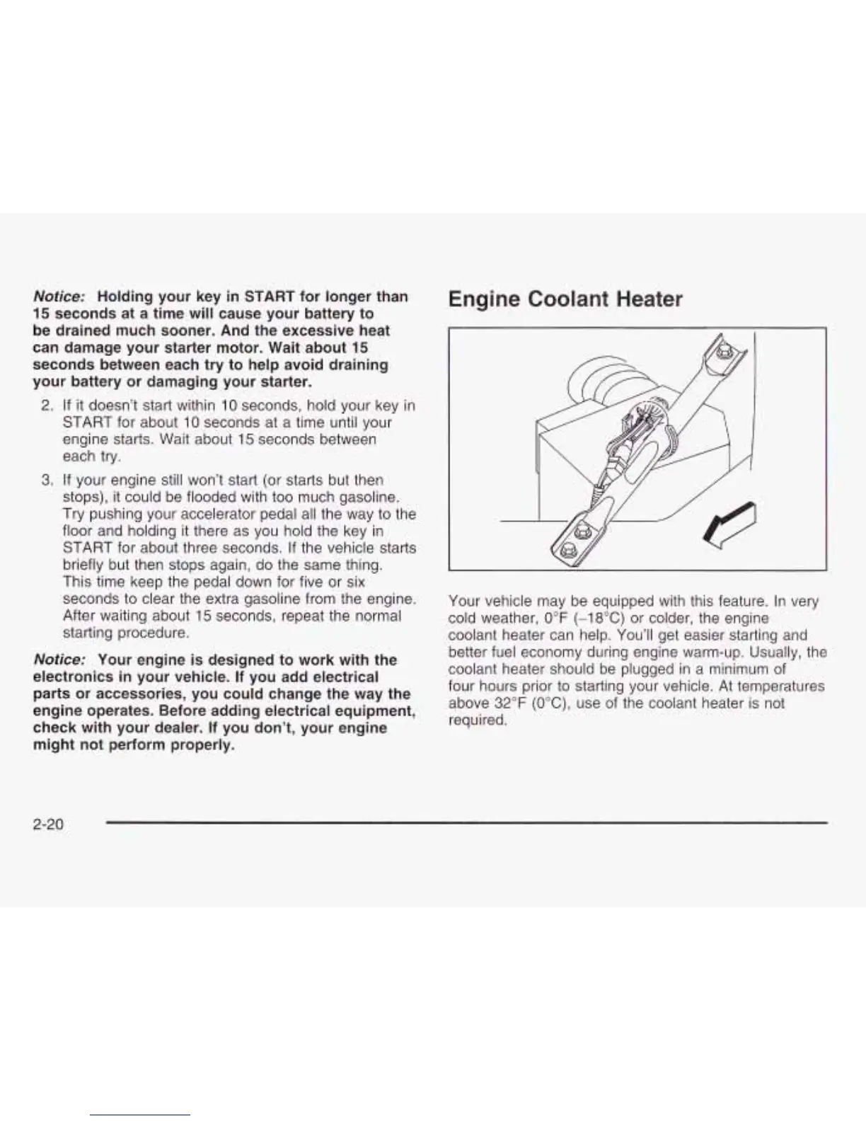 four hours prior to starting your vehicle. At temperatures