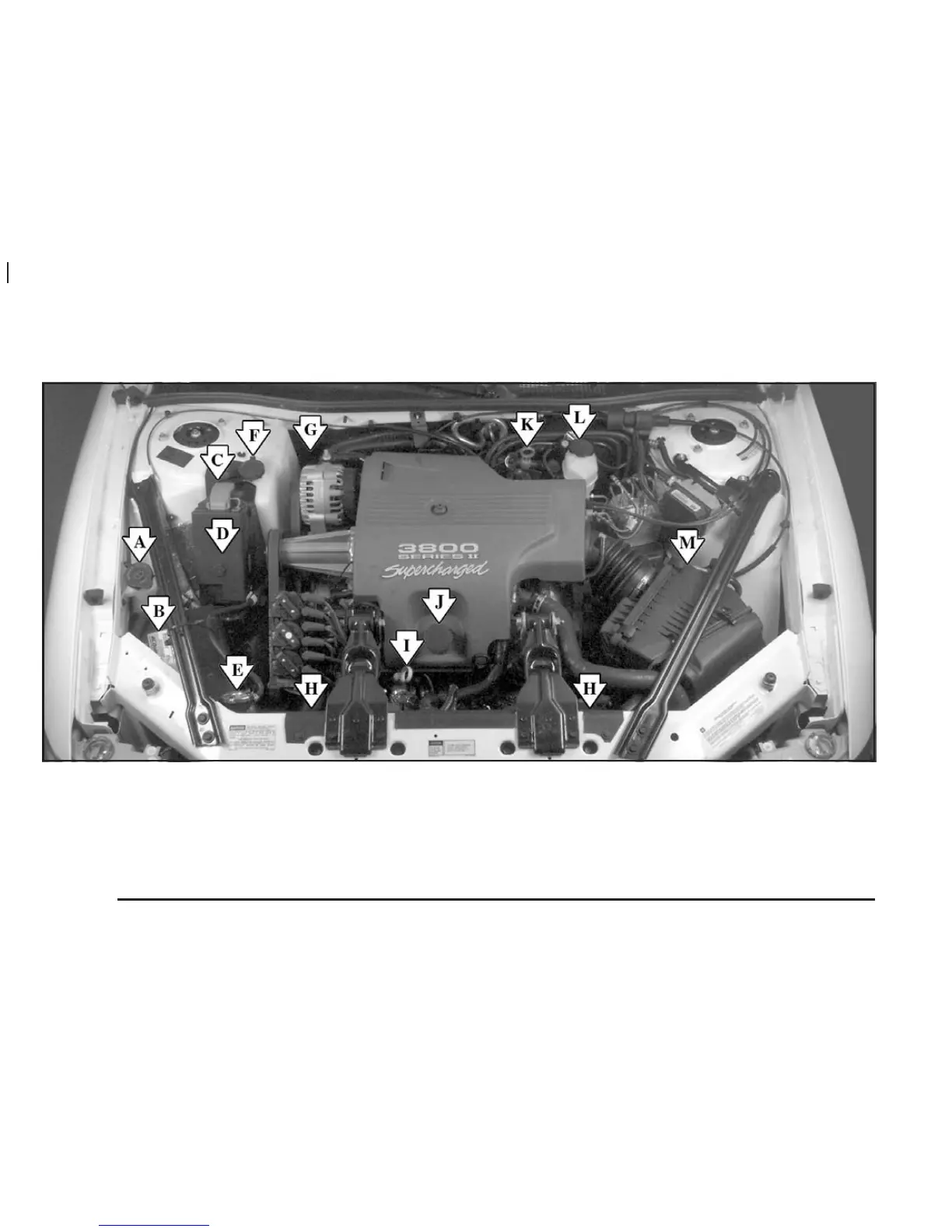 When you open the hood on the 3800 V6 Supercharged engine, you will see: