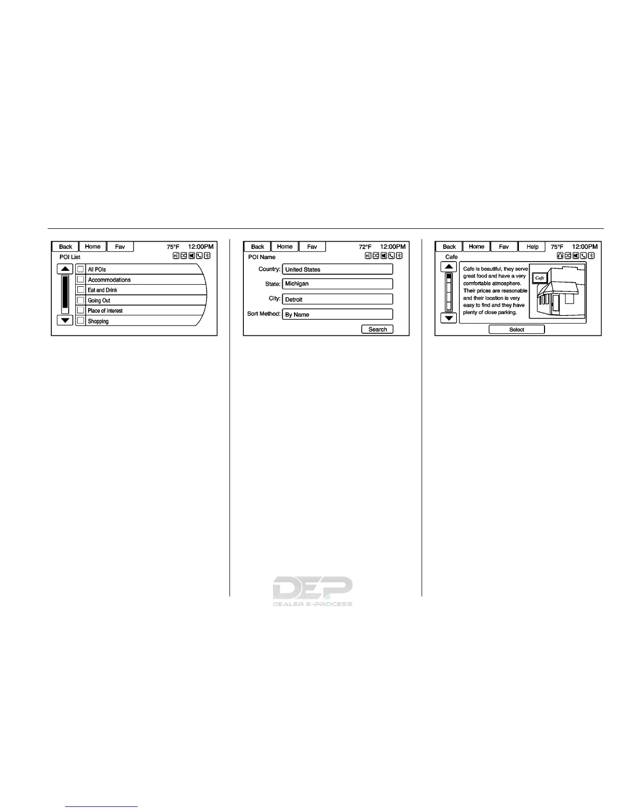 POI Selection menu to access