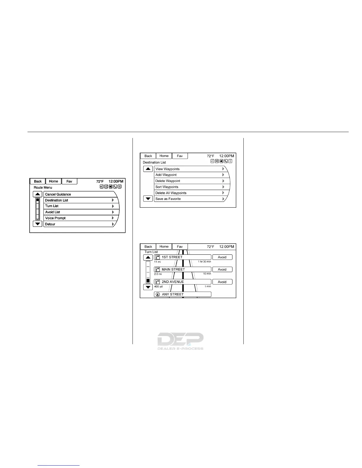 and Destination Menu with Route