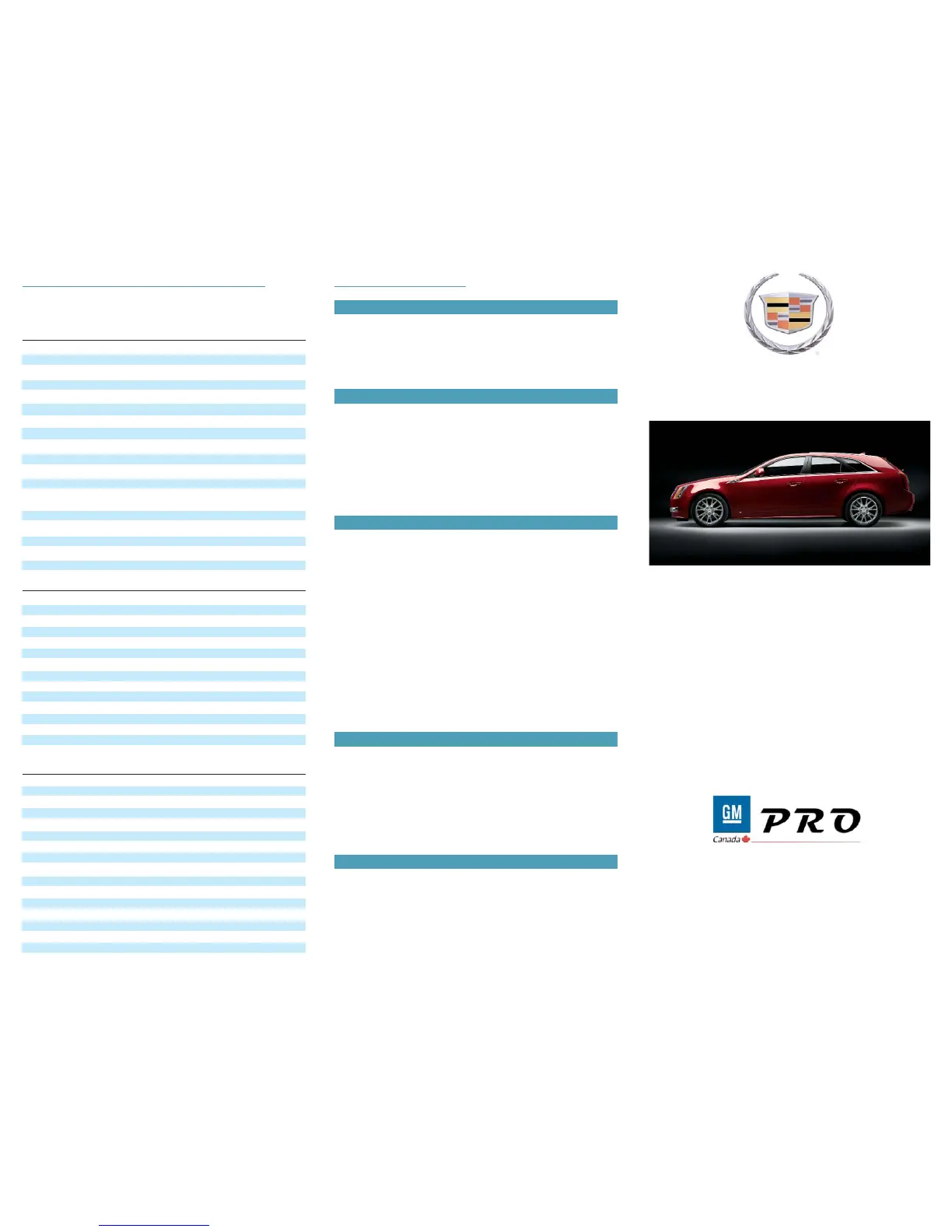 01/2010. Cadillac and General Motors of Canada reserve the right to discontinue or change at any