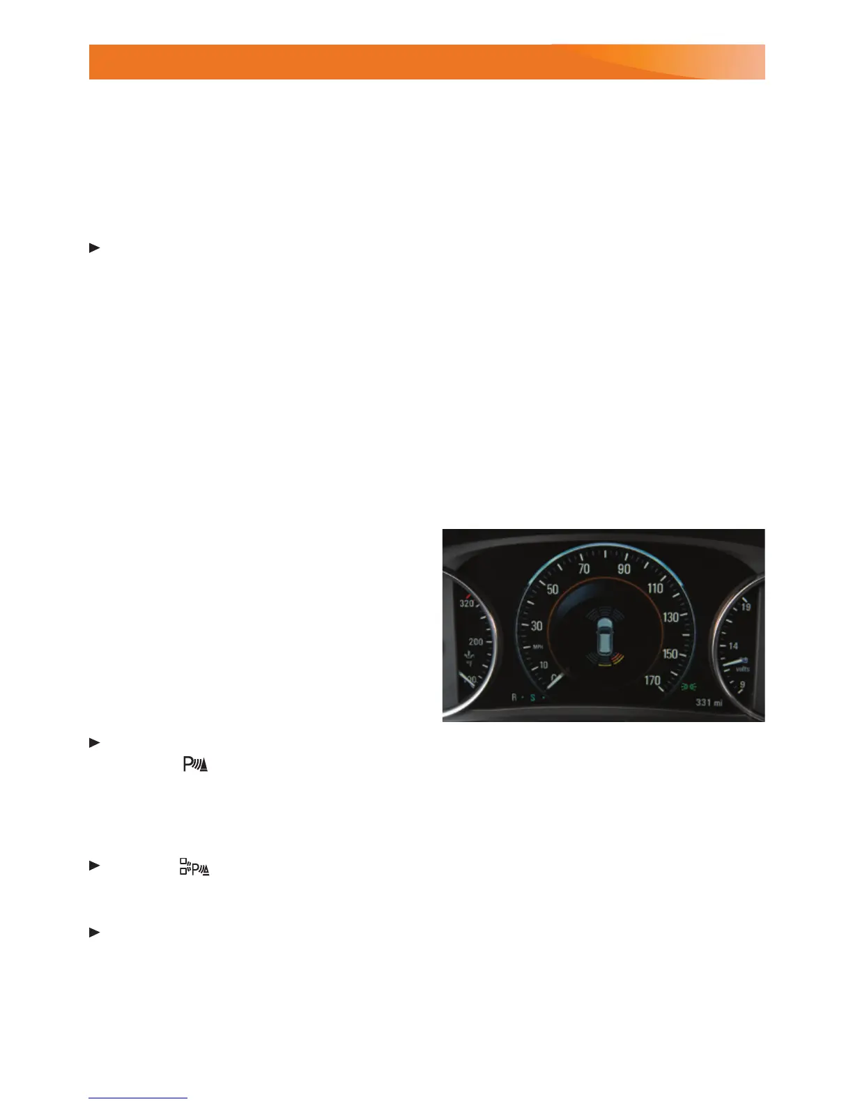 To turn the Front and Rear Parking Assist and Rear Cross Trac Alert systems on or off,