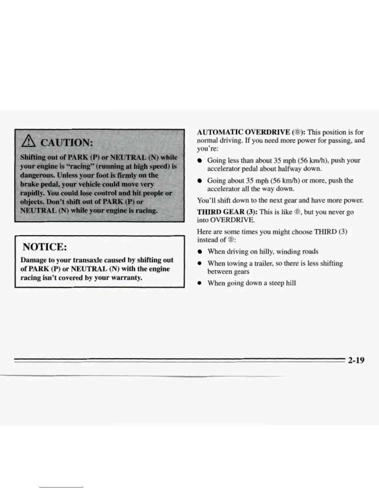 Damage to your transaxle caused by shifting out