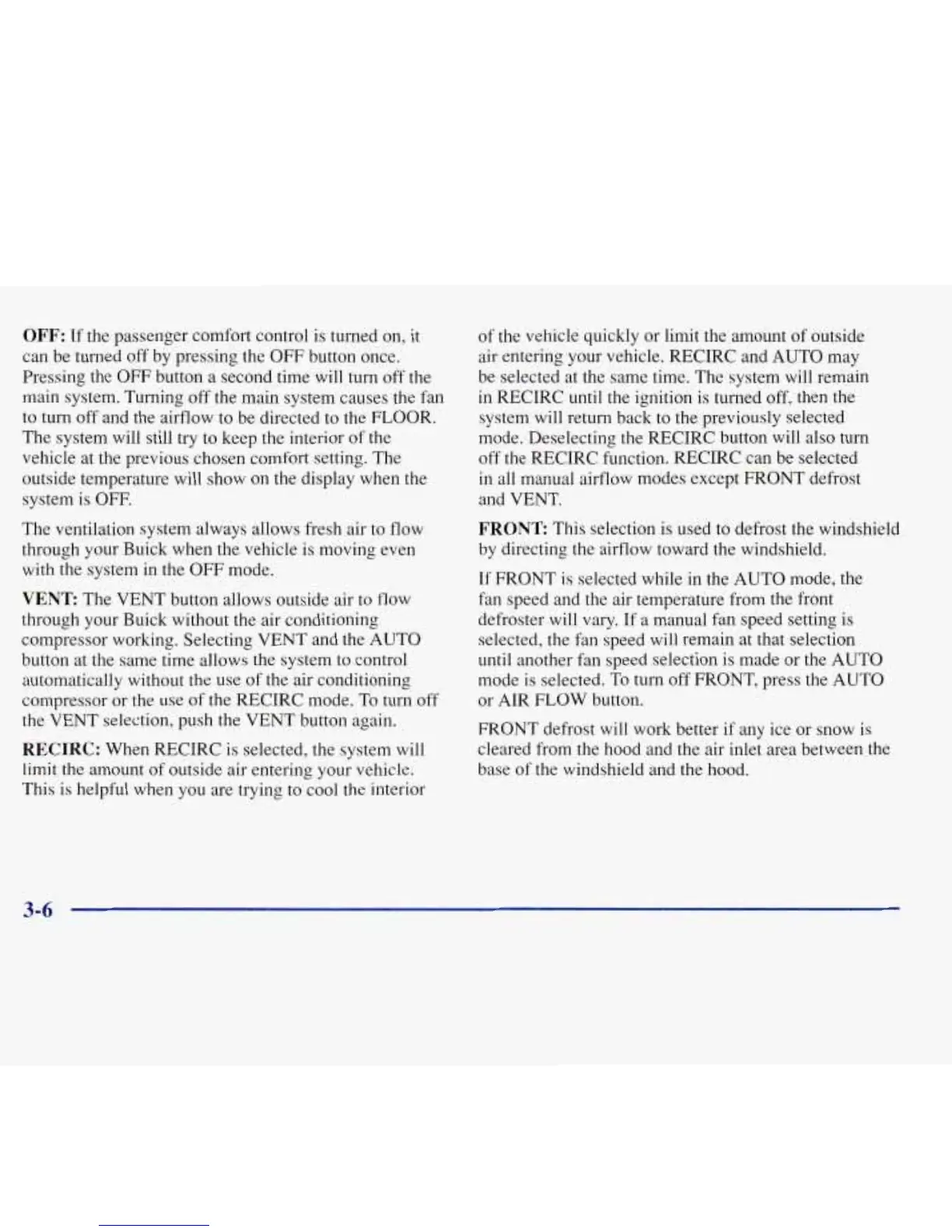 manual airflow modes except FRONT defrost