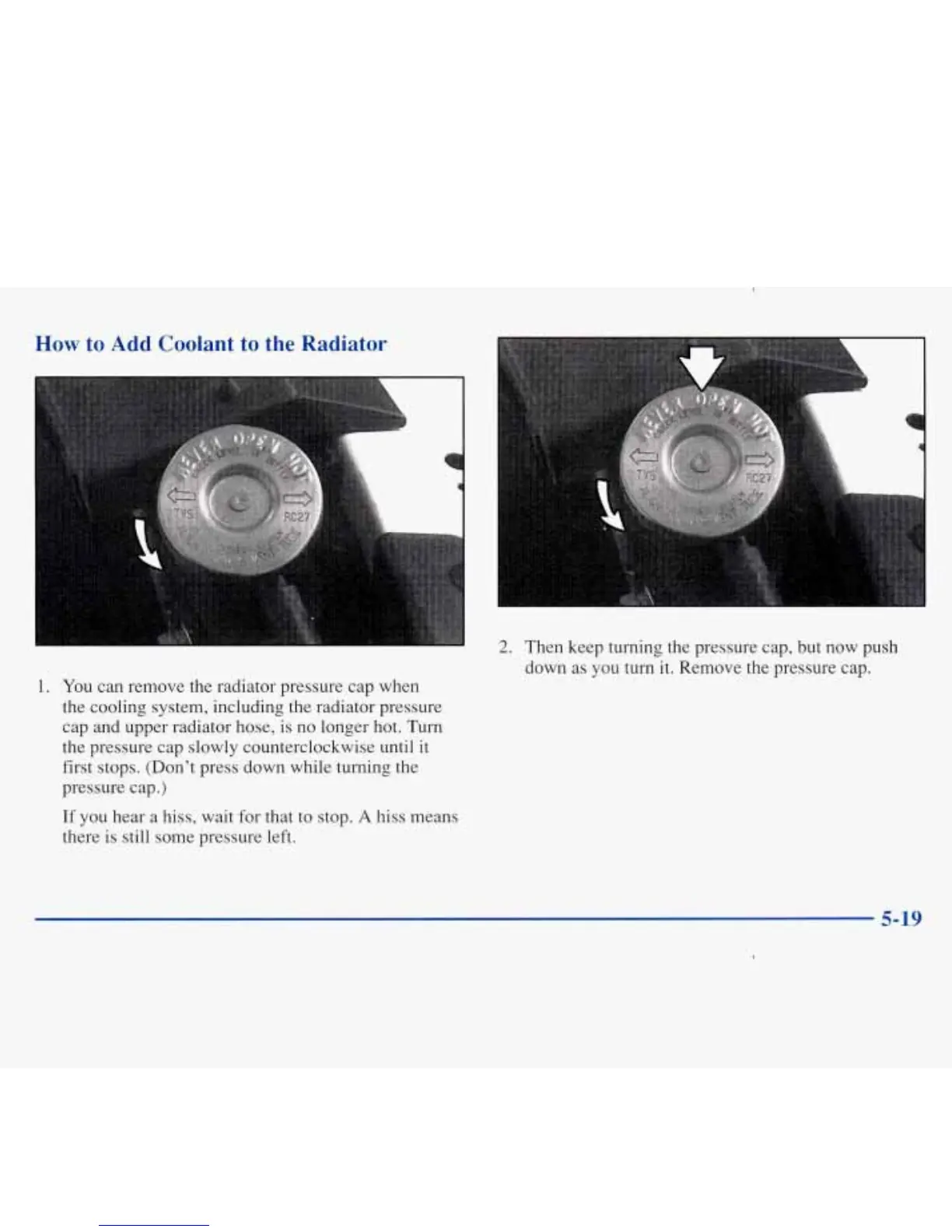 down as you turn it. Remove the pressure cap.