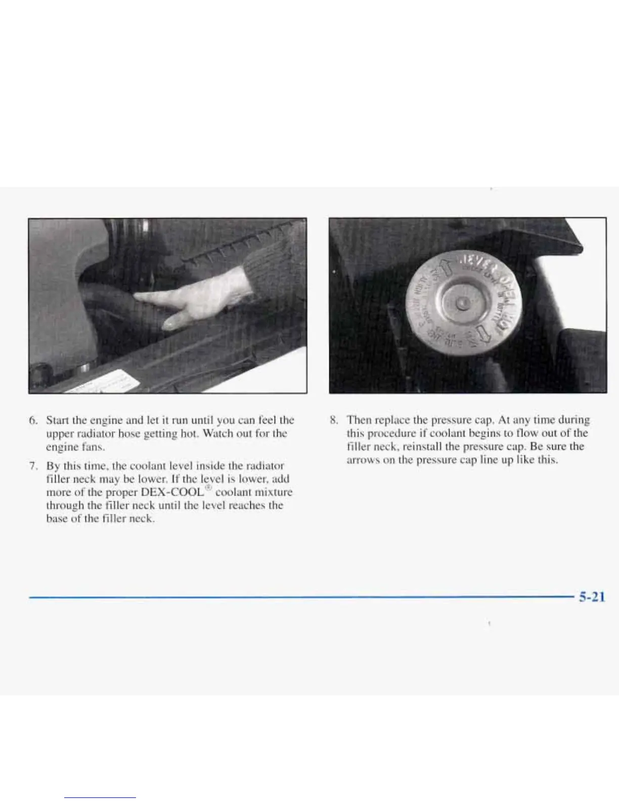 filler neck, reinstall the pressure cap. Be sure the