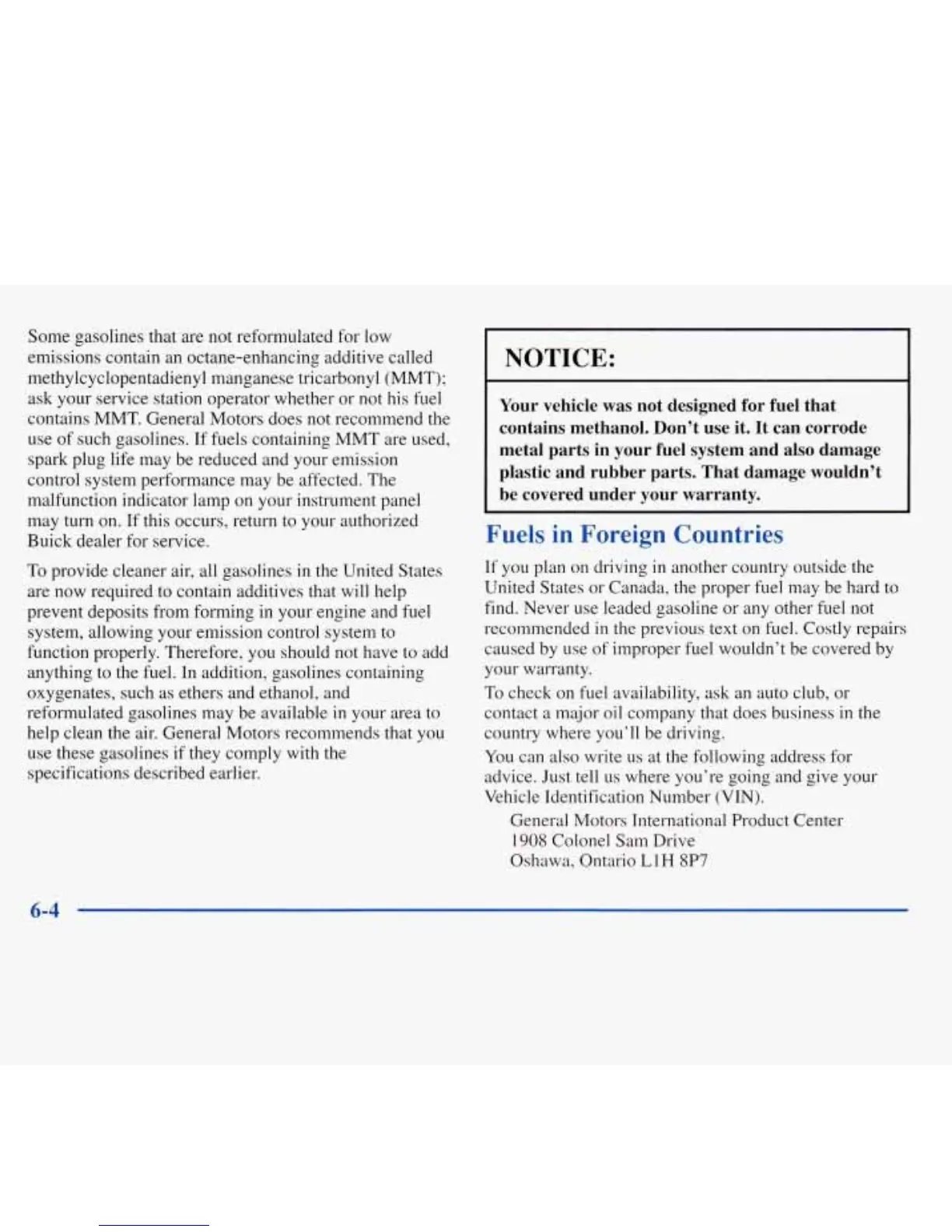 use of such gasolines. If fuels containing MMT are used,