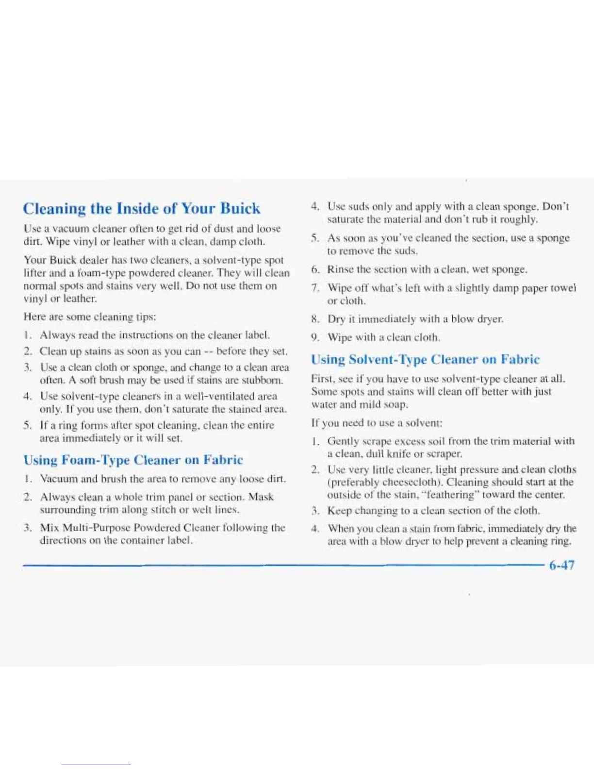 Your Buick dealer has two cleaners, a solvent-type spot