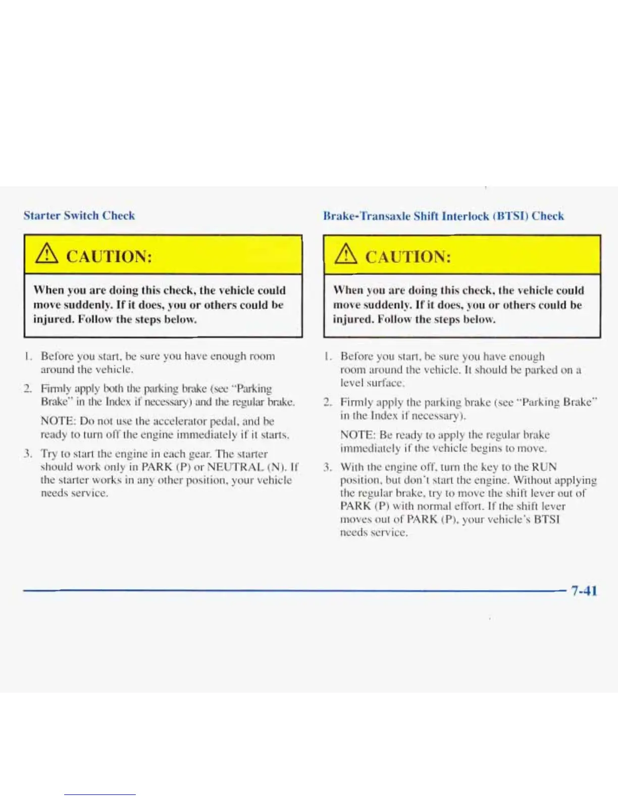 Starter Switch Check Brake-Transaxle Shift Interlock (BTSI) Check