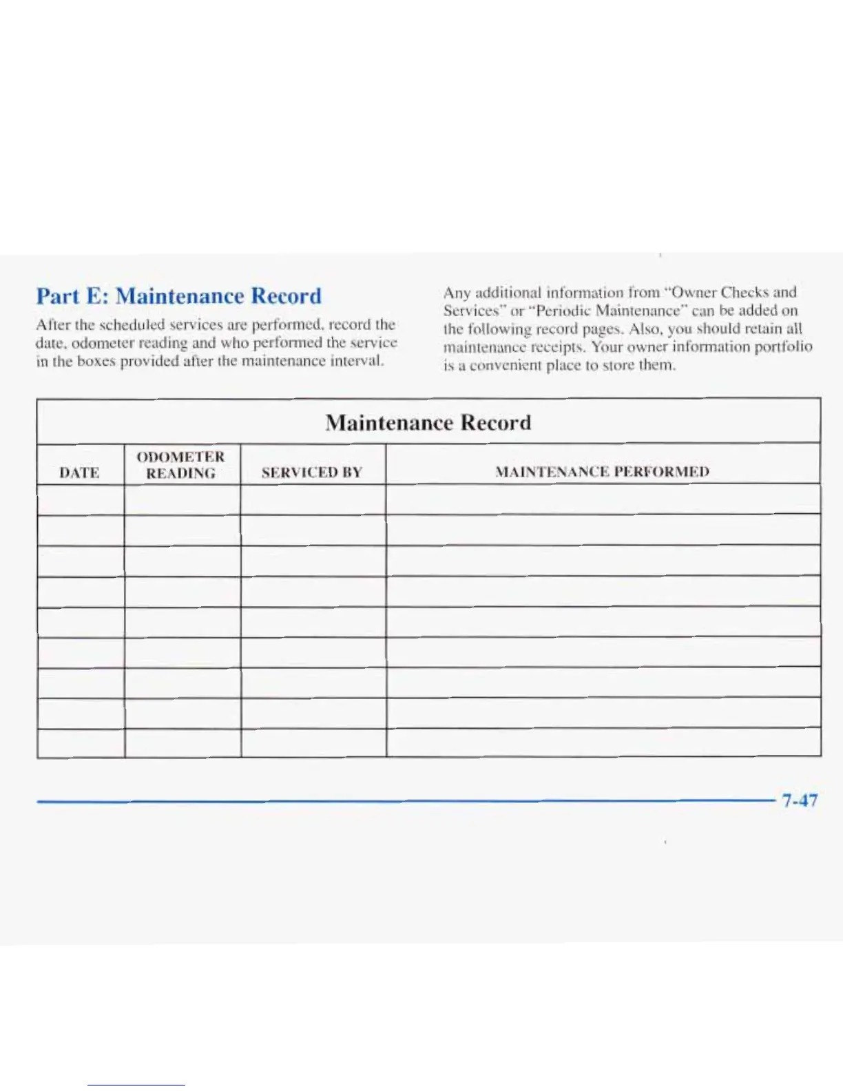 boxes provided after the maintenance interval.