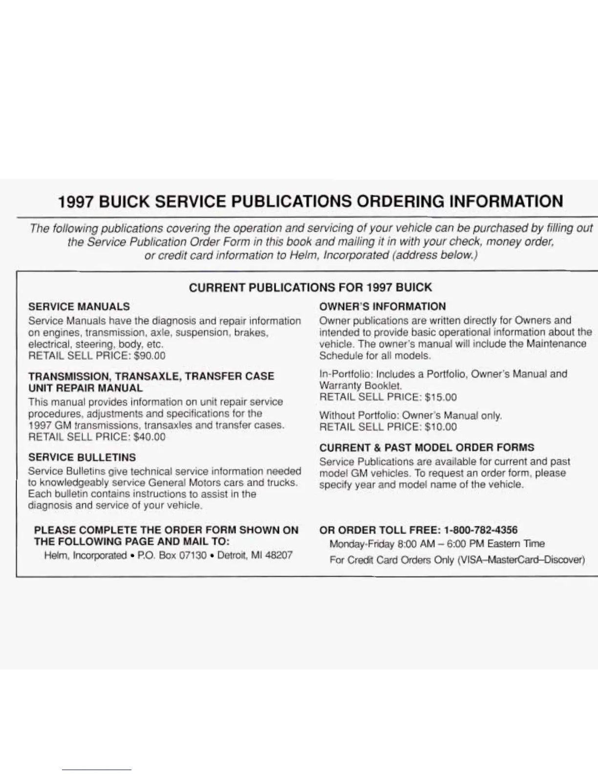 BUICK SERVICE PUBLICATIONS ORDERING