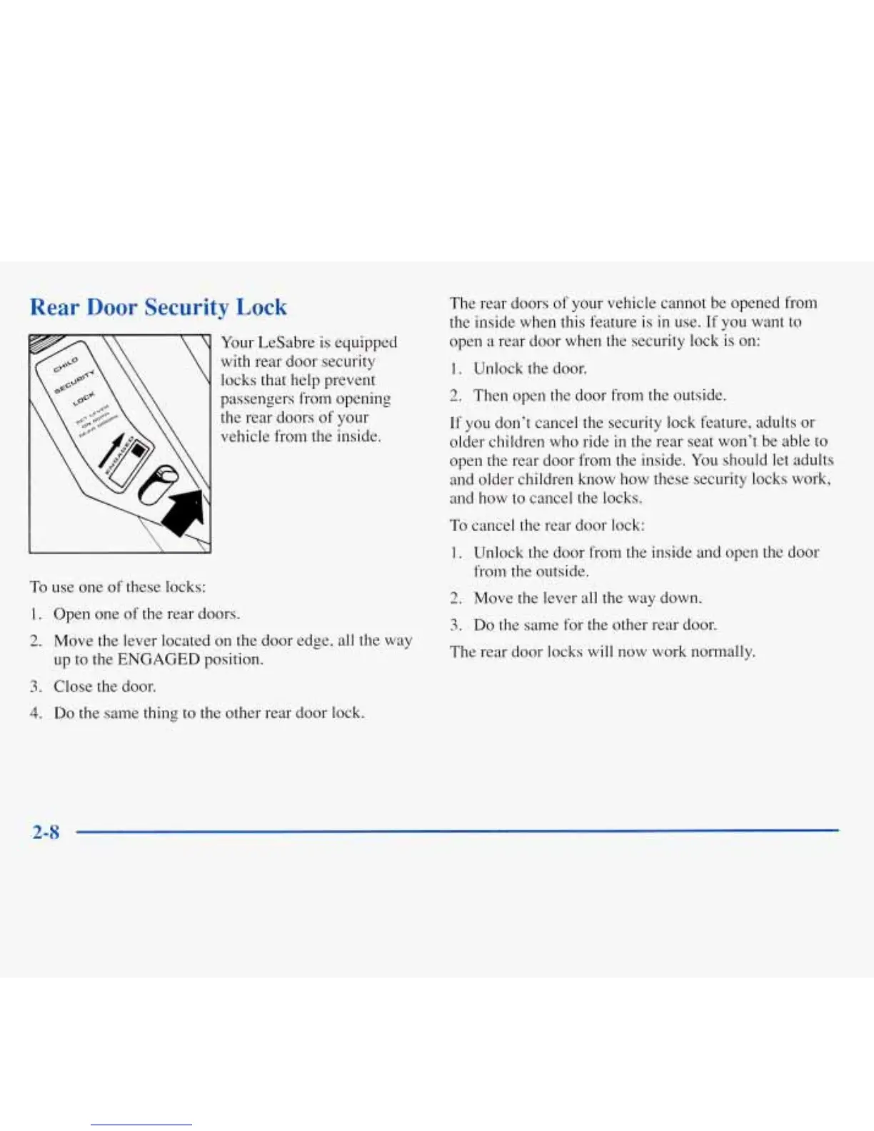 open a rear door when the security lock is on: