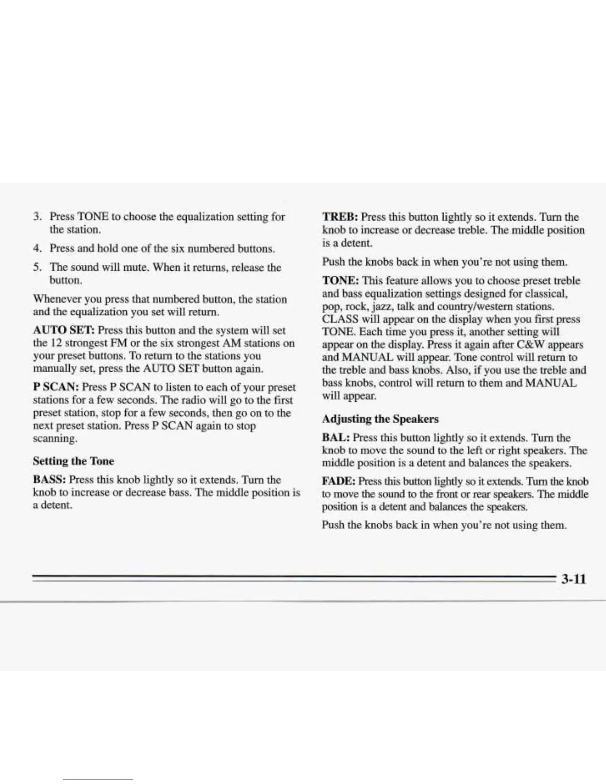 decrease treble. The middle position