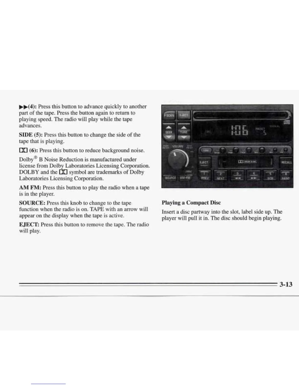 playing speed. The radio will play whiie the tape