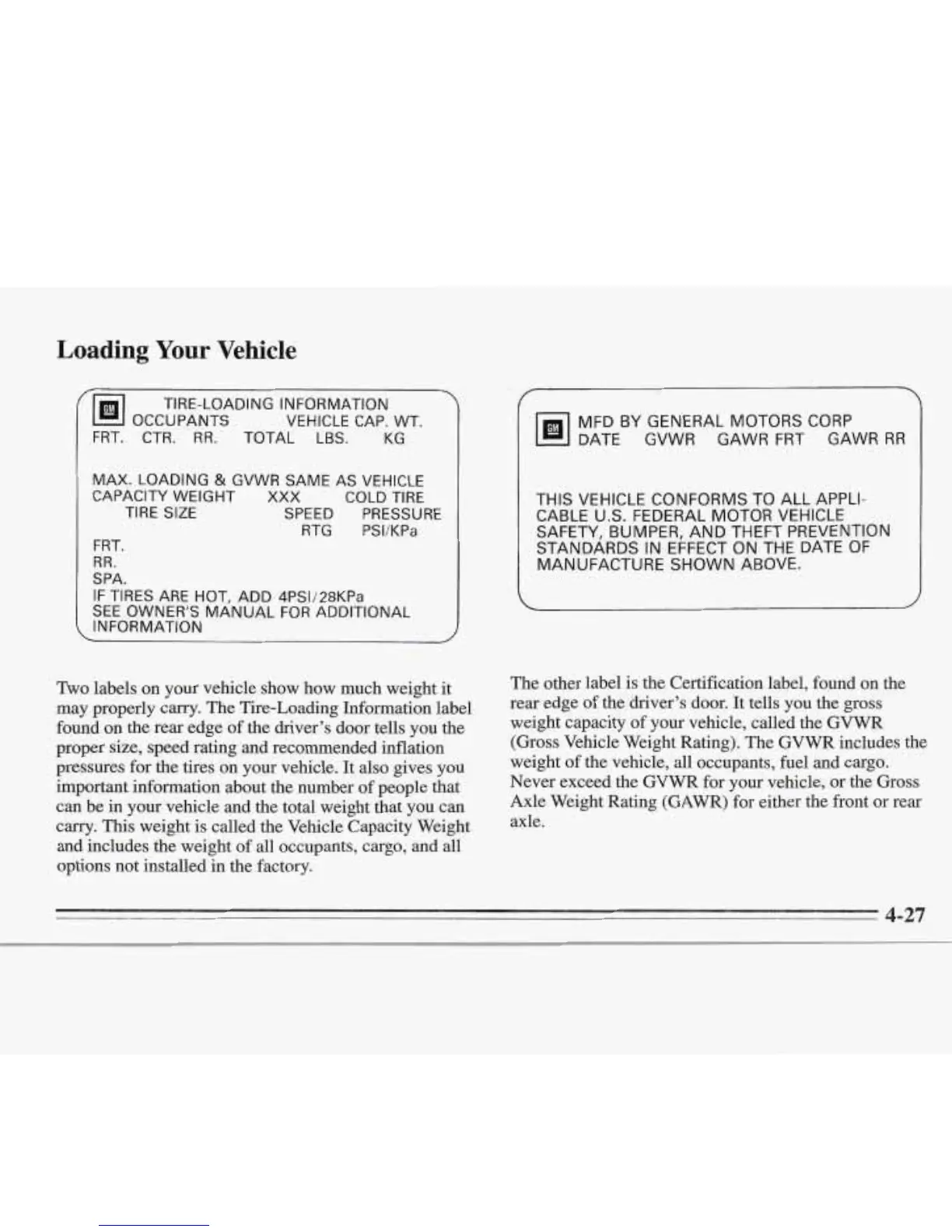 Two labels on your vehicle show how much weight it