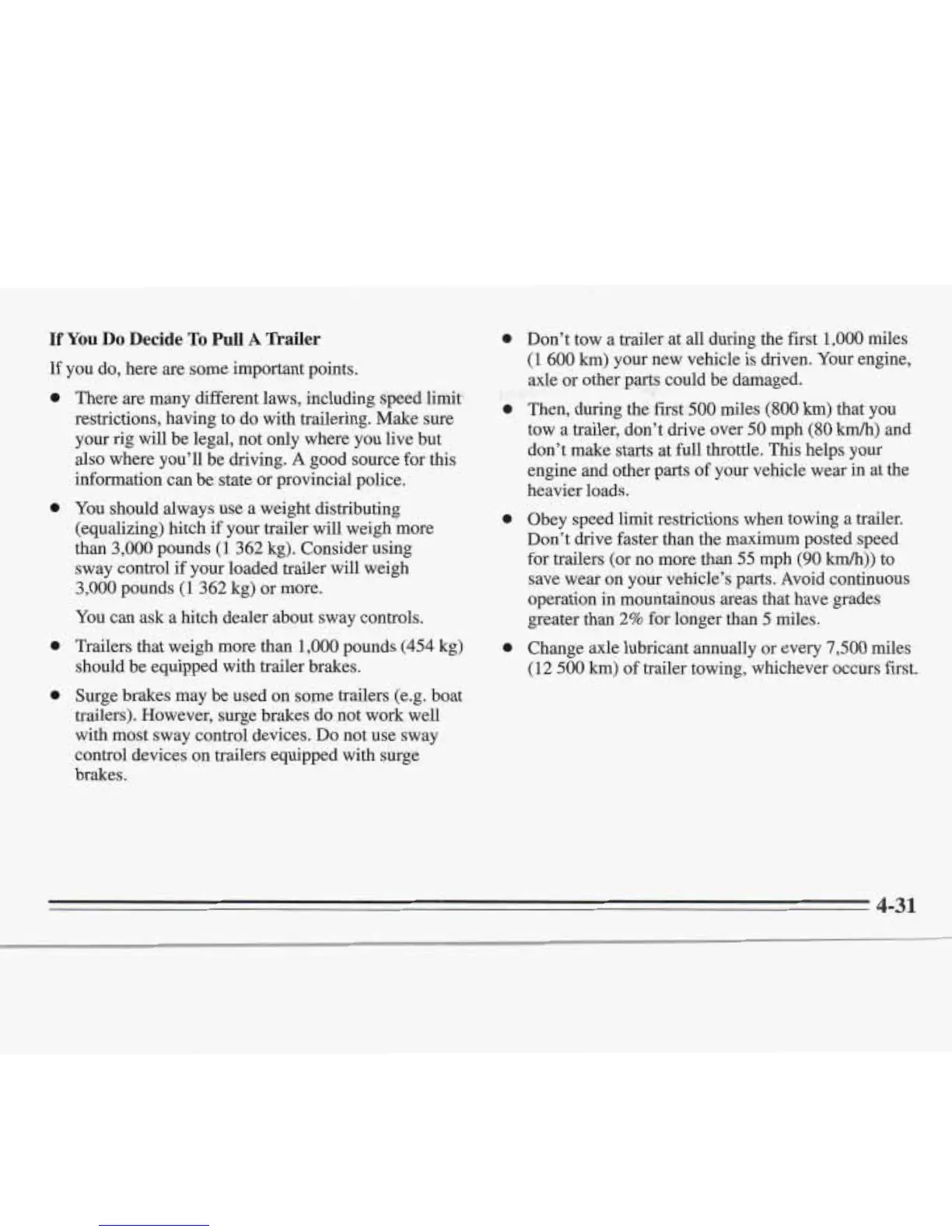 Don’t tow a trailer at all during the first
