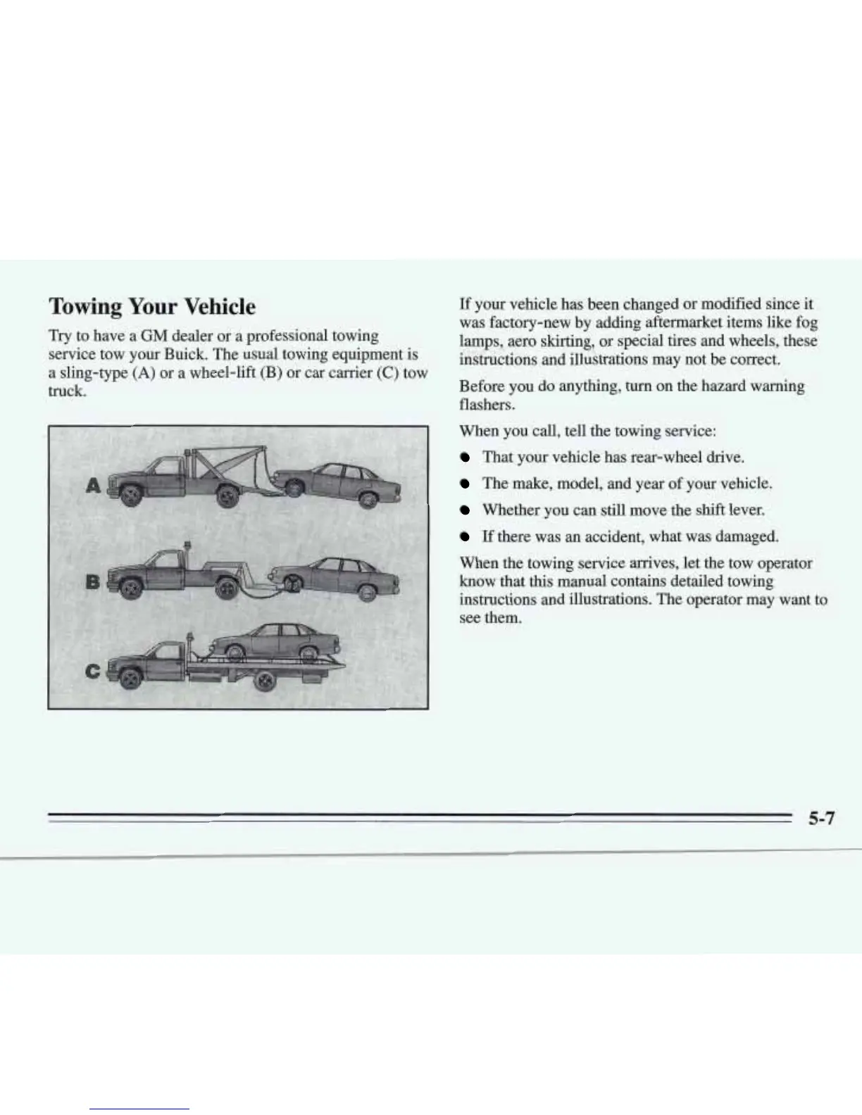service tow your Buick. The usual towing equipment