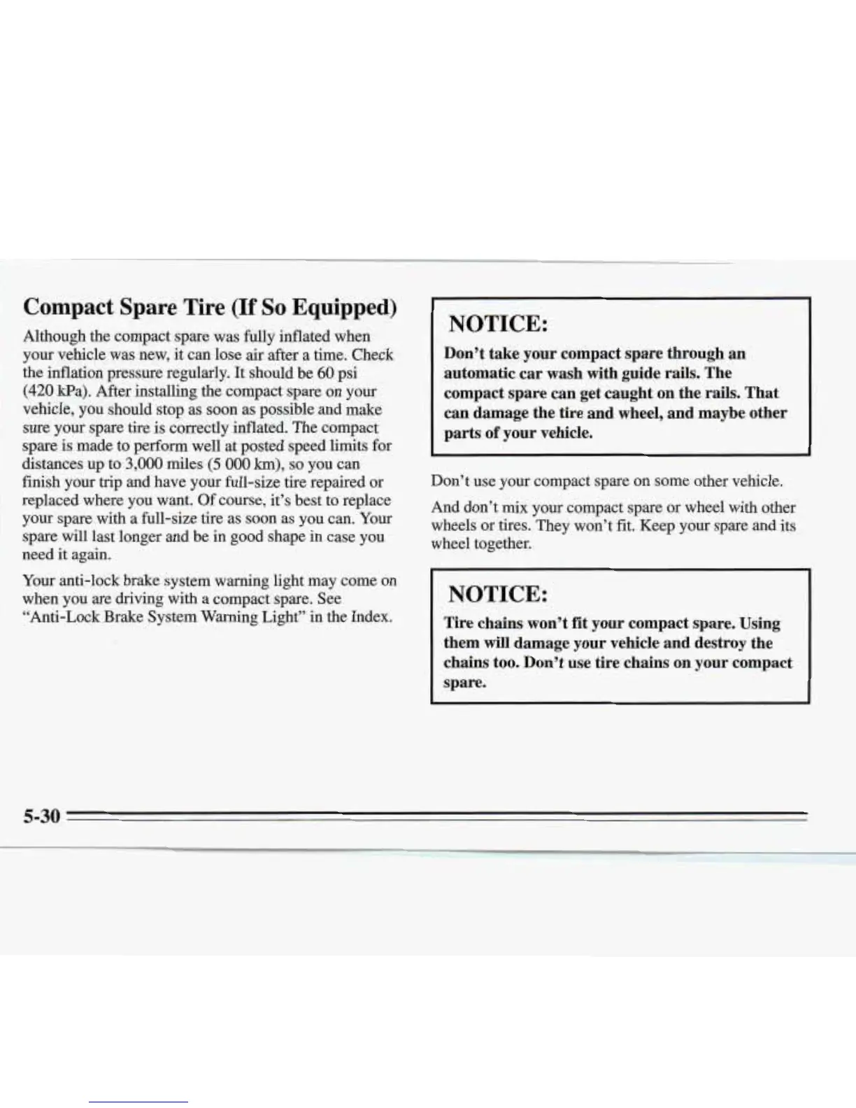chains too. Don’t use tire chains on your compact
