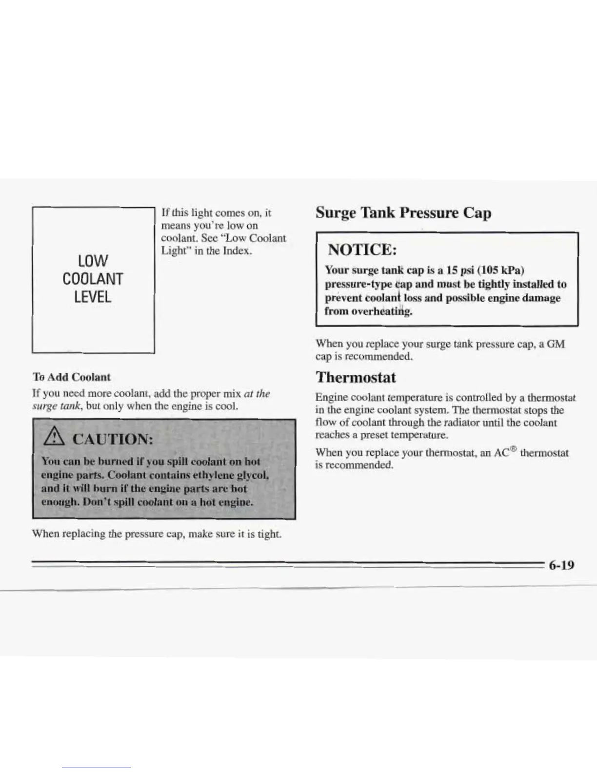 coolant. See “Low Coolant