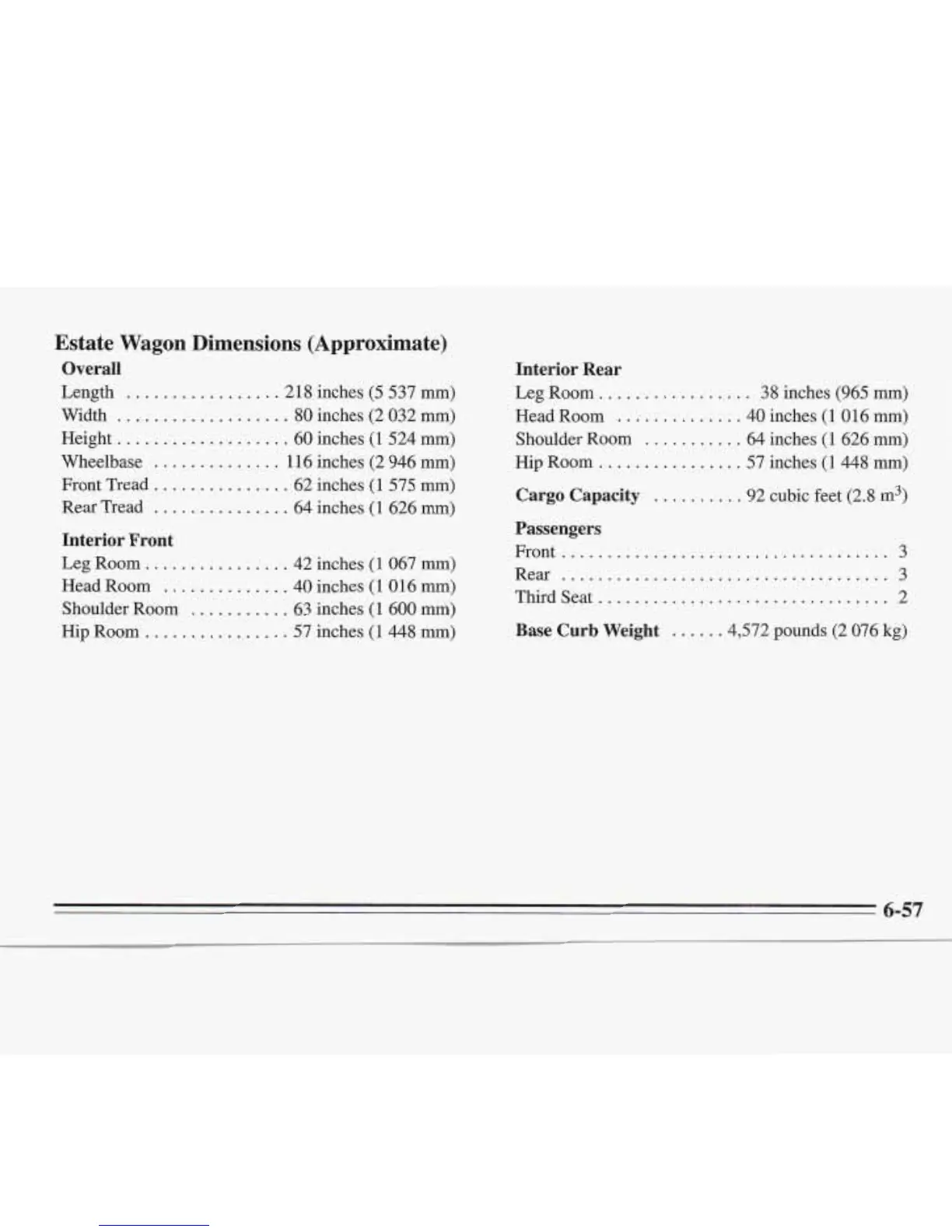Estate Wagon Dimensions (Approximate)