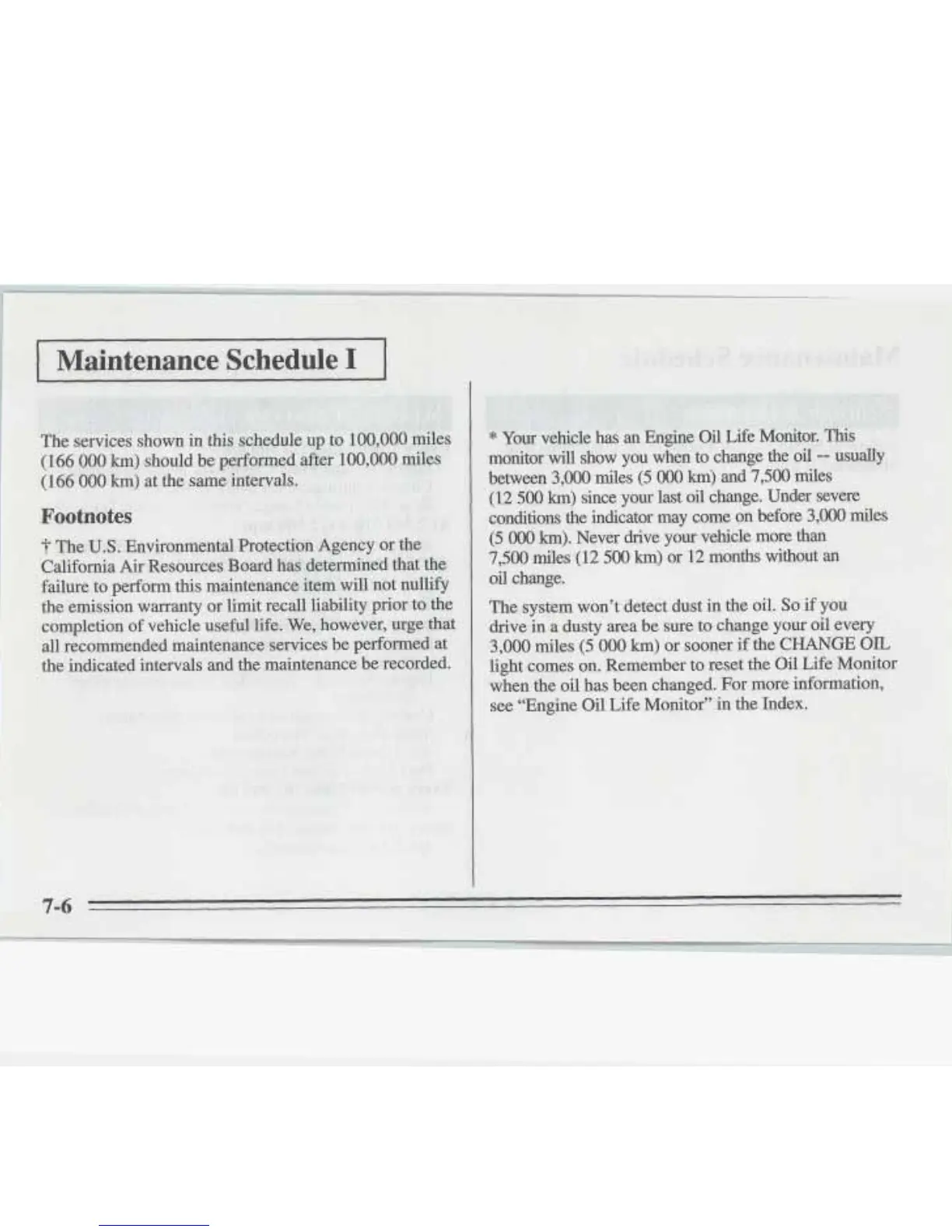Buick ROADMASTER 1995 - Maintenance Schedule I