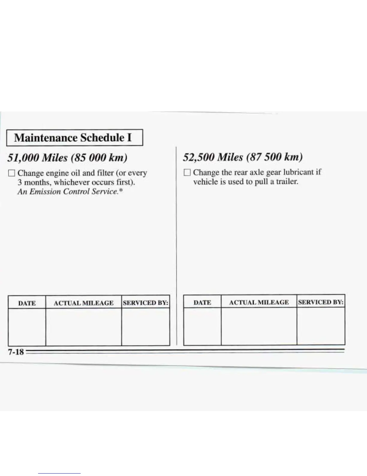 DATE ACTUAL MILEAGE SERVICED