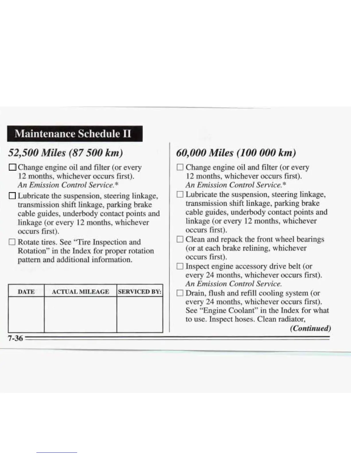Maintenance Schedule