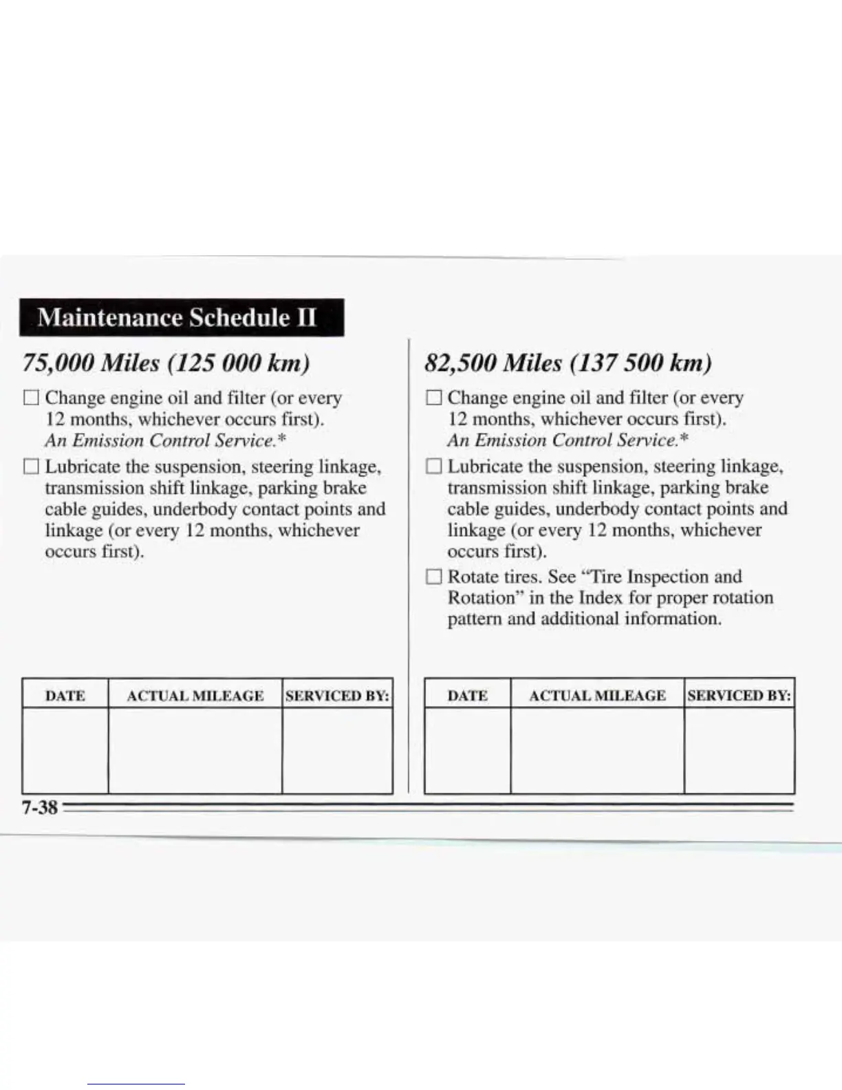 DATE ACTUAL MILEAGE SERVICED