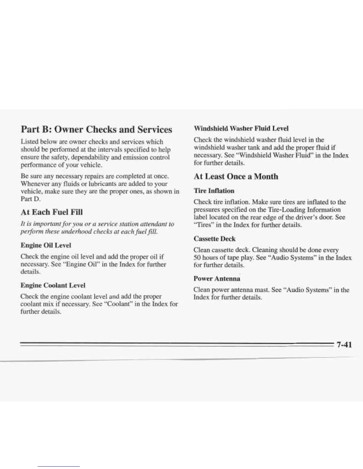 necessary. See “Windshield Washer Fluid” in the Index