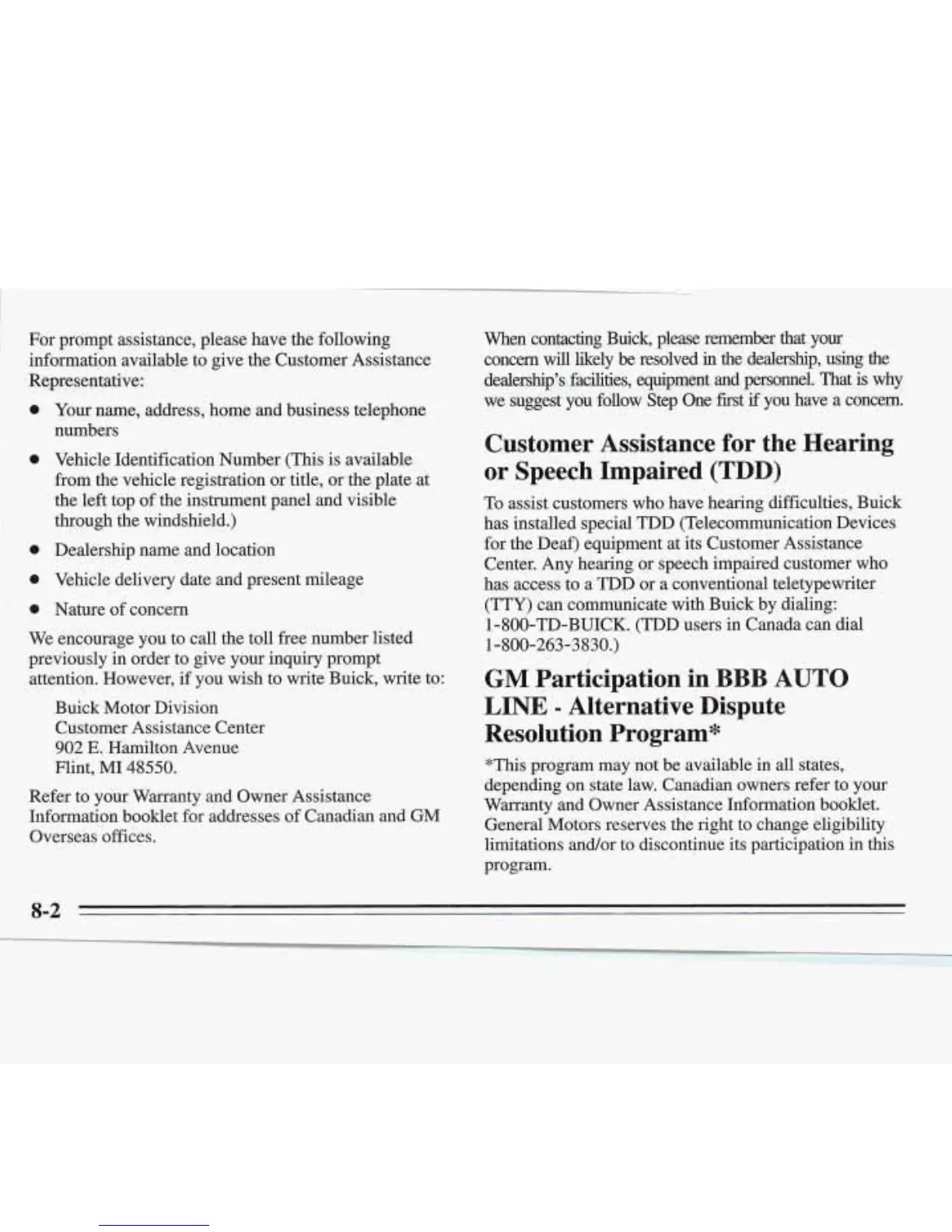 1-800-TD-BUICK. (TDD users in Canada can dial