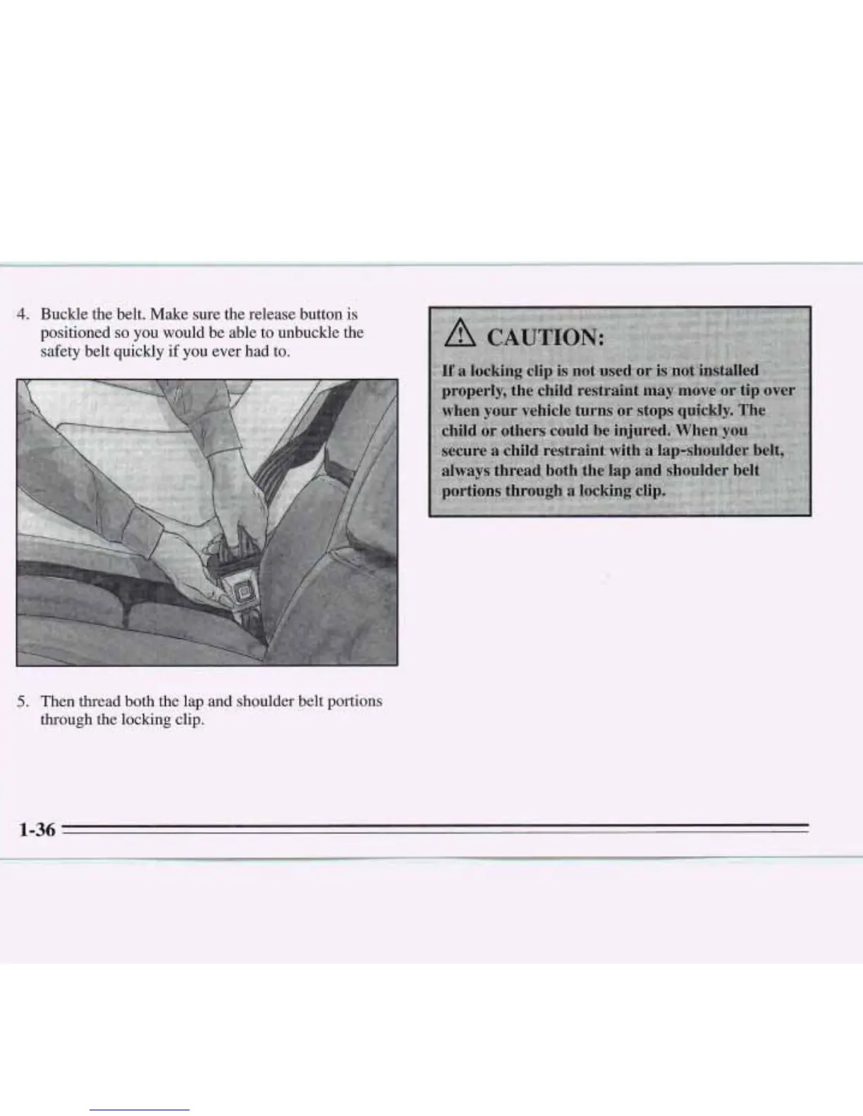 Buckle the belt. Make sure the release button