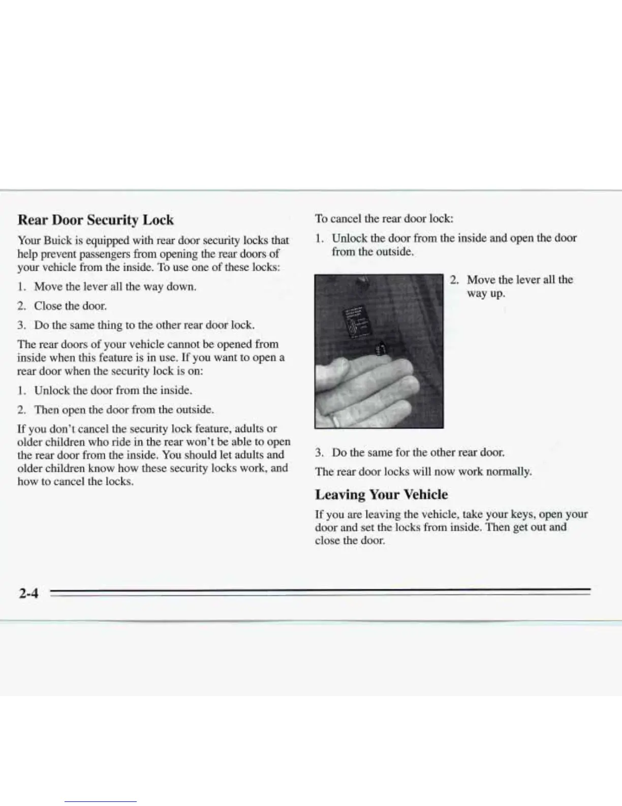 Your Buick is equipped with rear door security locks that