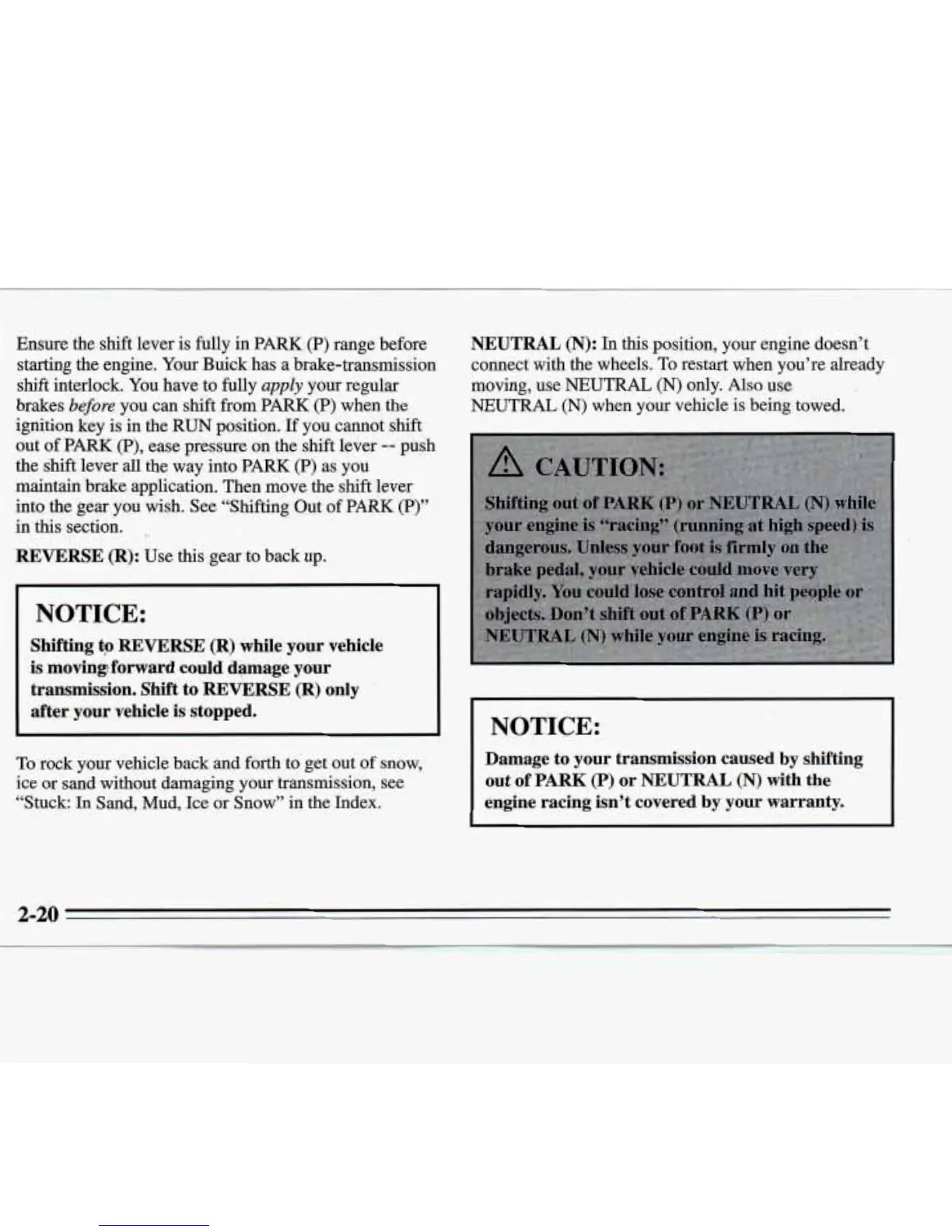 starting the engine. Your Buick has a brake-transmission connect with the wheels.