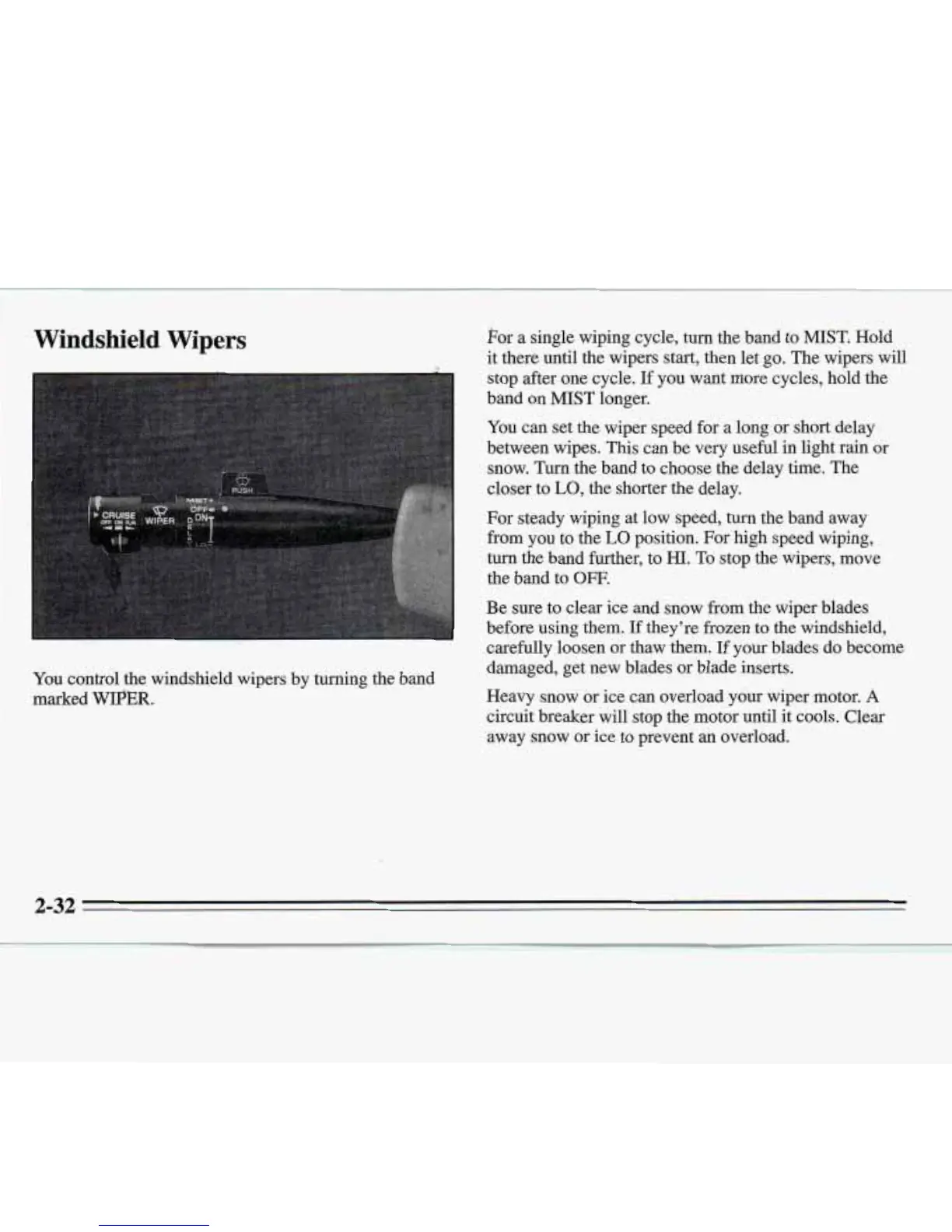 Heavy snow or ice can overload your wiper motor.