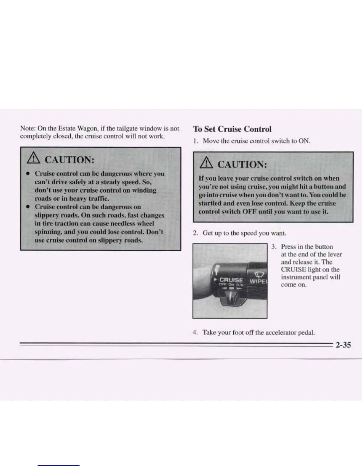 completely closed, the cruise control will not work.