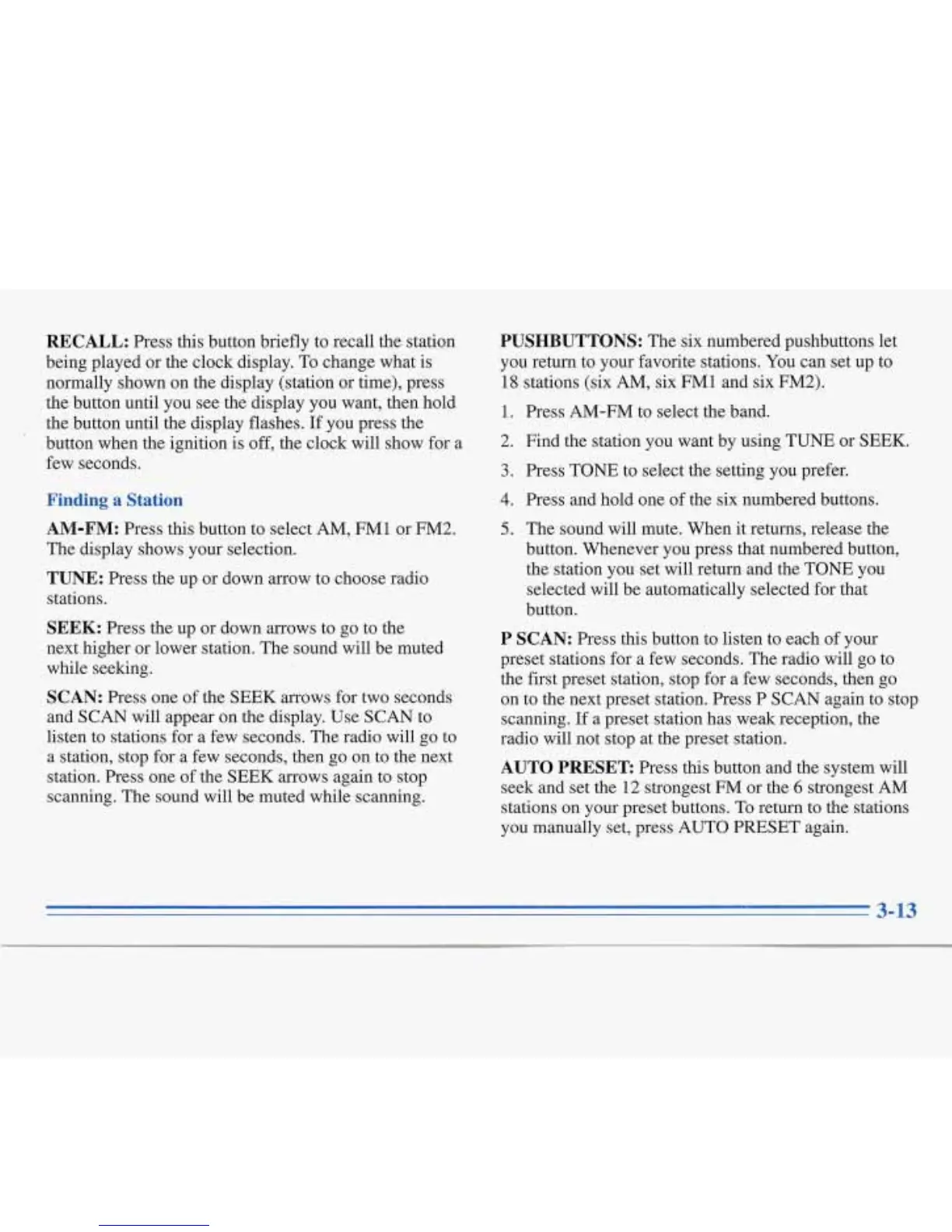 preset stations for a few seconds.