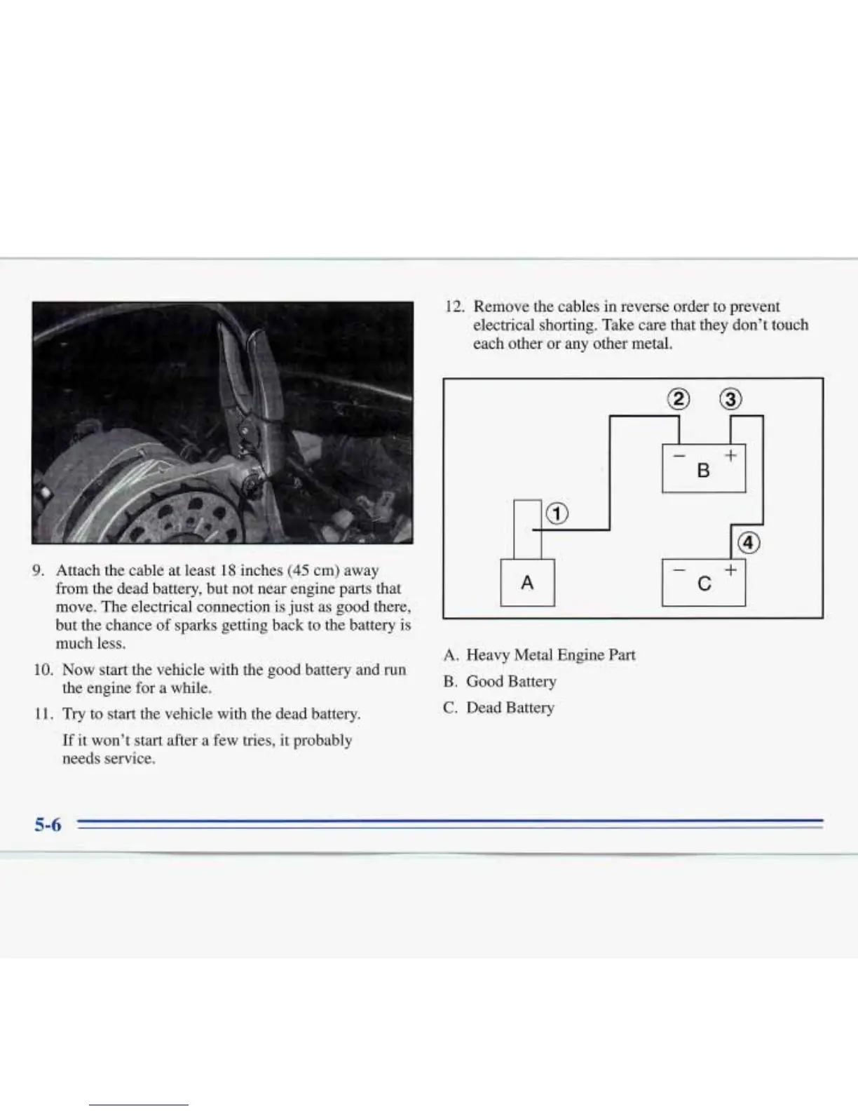 from the dead battery, but not near engine parts that