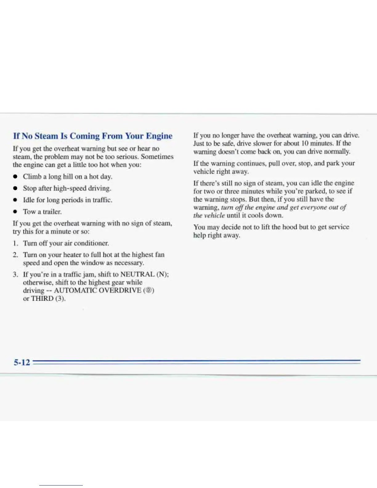 If there’s still no sign of steam, you can idle the engine