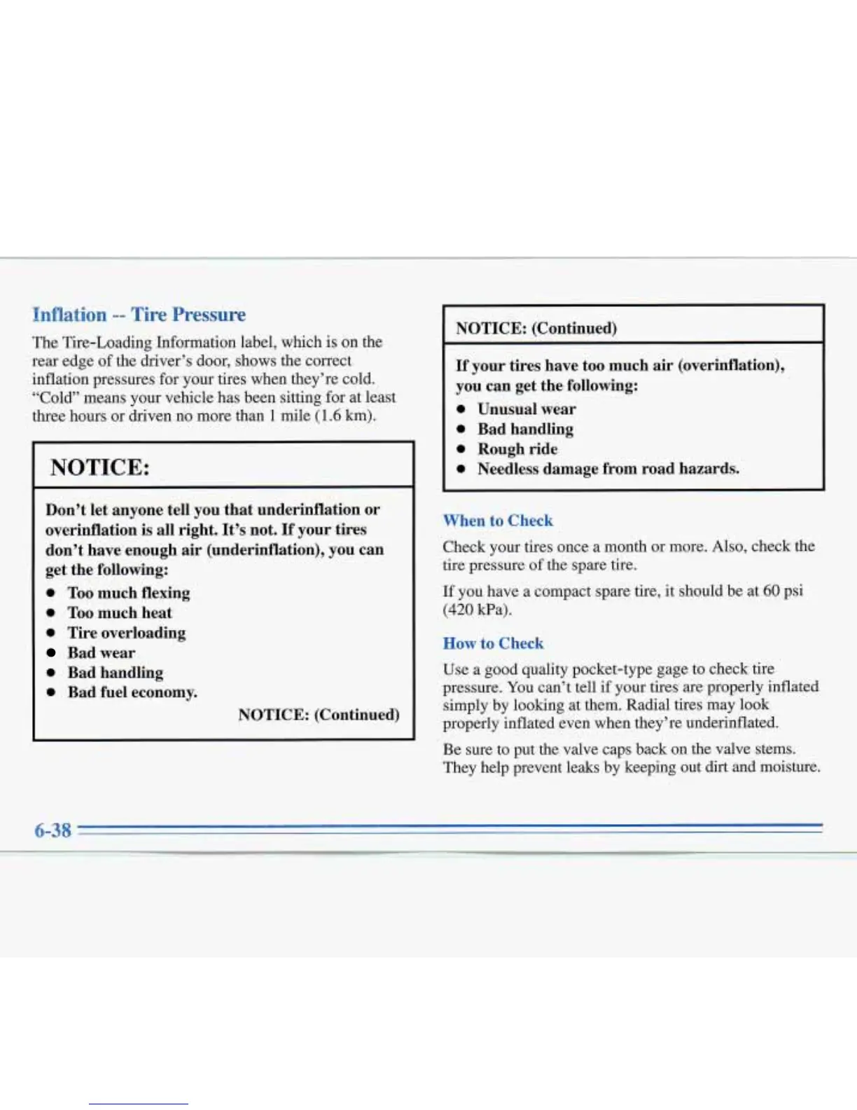 inflation pressures for your tires when they’re cold.